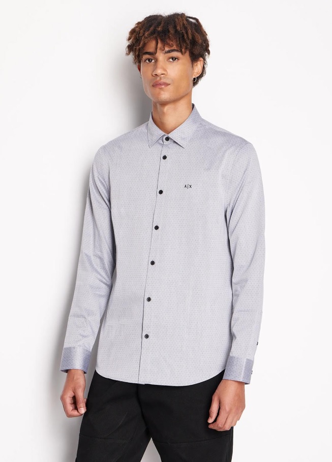 Camicia classica realizzata in cotone satinato caratterizzata dalla vestibilità regular fit, dal collo classico e dai bottoni.