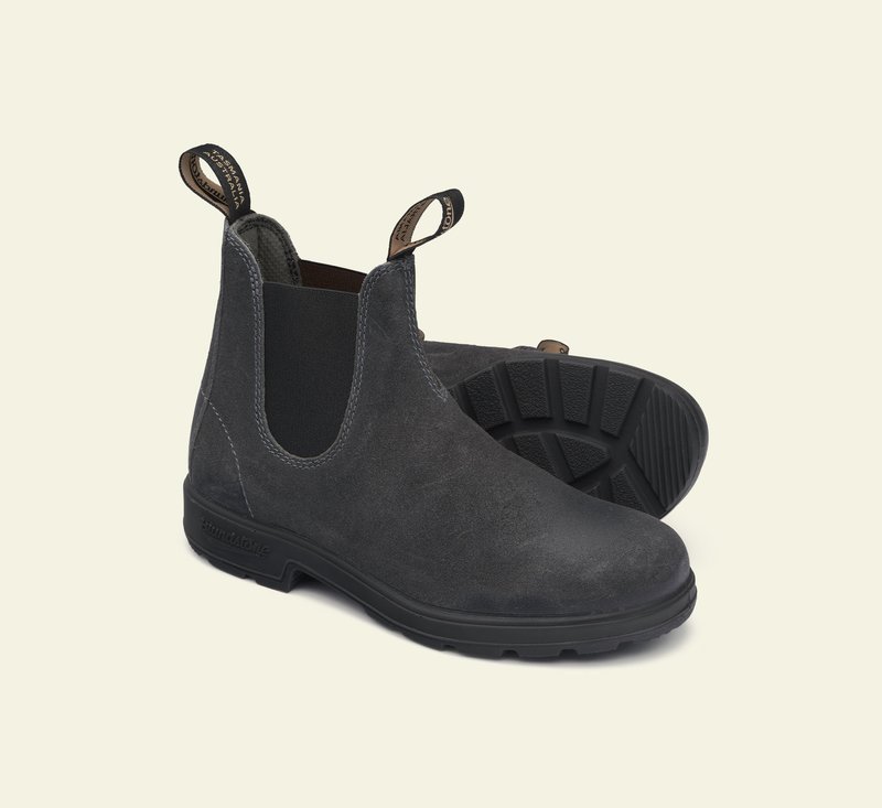 Gli stivaletti modello Blundstone #1910 silhouette Chelsea boots, sono realizzati in pelle scamosciata impermeabile grigio acciaio con classici elastici laterali in tono. Dotati di linguetta sia nella parte frontale che posteriore per aiutare la calzata, si elevano su di una comoda suola in gomma antiscivolo con tallone rialzato e logato. Una scarpa sportiva dal look grintoso della serie Originals, perfetta per dare un tocco classico ma alla moda ai vostri outfit di tutti i giorni.