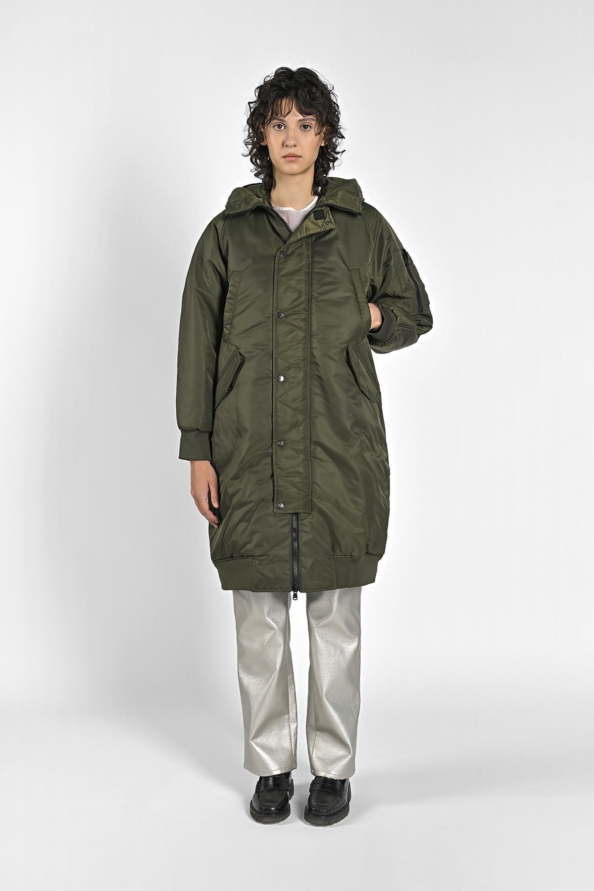 Tradizione e contemporaneità si mixano perfettamente in questo imperdibile piumino lungo proposto da Canadian per la prossima stagione. Realizzato esternamente in raso di nylon, la sua imbottitura di poliestere è calda e traspirante. Tanti sono i dettagli che lo rendono speciale a partire dal cappuccio integrato che può essere aperto tramite una cerniera e diventare un maxi collo risvoltato, le molteplici tasche, i bordi di maglia ma soprattutto il bellissimo ricamo che riprende una xilografia giapponese e ne decora la schiena.