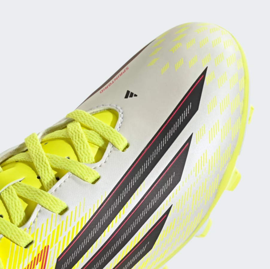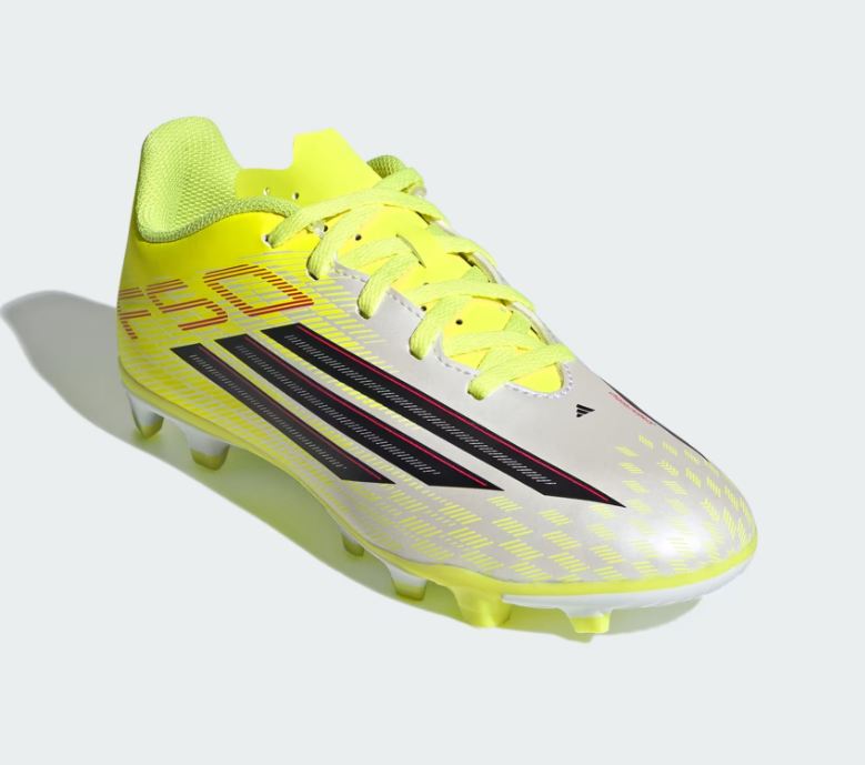 Le scarpe da calcio F50 Club per terreni compatti/multiterreno per bambini sono progettate per aiutare i giovani giocatori a liberare il loro potenziale. Con una grafica rinnovata sulla tomaia e una sensazione di leggerezza, sono progettate per una velocità che cambia il gioco. La tomaia sintetica testurizzata offre un'estetica tecnica e una calzata confortevole, mentre la suola FXG offre trazione su superfici in erba naturale e artificiale. Dotate di chiusura con lacci per una calzata sicura, una linguetta sintetica leggera con fori per una maggiore circolazione dell'aria e un parafango 2D stampato, queste scarpe uniscono stile adidas e prestazioni atletiche.