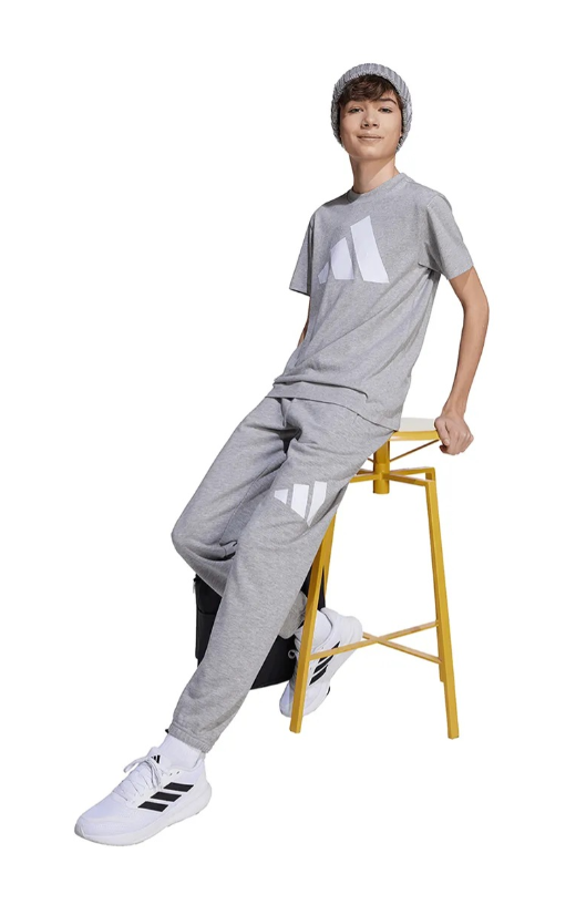 Adidas per bambini pantaloni della tuta realizzati in maglia con stampa. Il modello realizzato in un tessuto estremamente confortevole ad alta percentuale di cotone.