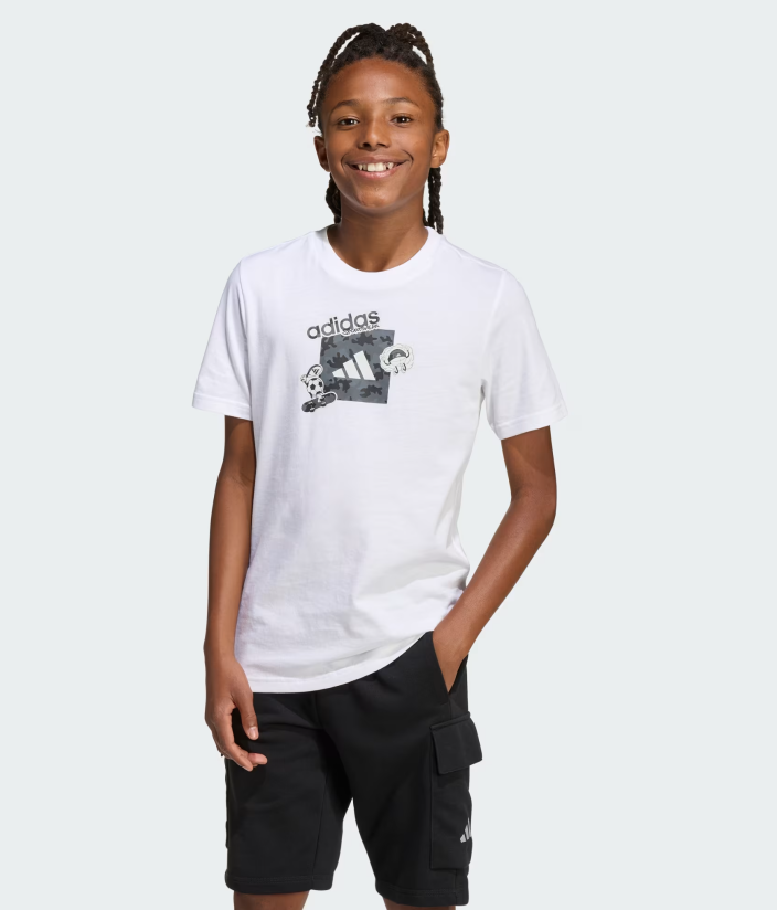Progettata per stare al passo con i bambini in movimento, la T-SHIRT GRAPHIC CAMO offre un inconfondibile stile mimetico e un look sportivo e cool. Perfetta per l'avventura e l'esplorazione, è un capo essenziale e divertente per tutti i giorni. Realizzata in morbido jersey, questa T-shirt è morbida sulla pelle e offre leggerezza e comfort per tutto il giorno. La grafica mimetica aggiunge un tocco audace, rendendola una delle preferite dai bambini che amano distinguersi. Dallo sport al parco alla giornata a scuola, il tuo bambino può esprimere il suo spirito avventuroso con una T-shirt che si adatta al suo ritmo e alla sua energia. Questa T-shirt incarna l'impegno di adidas nel creare abbigliamento che supporti uno stile di vita attivo.