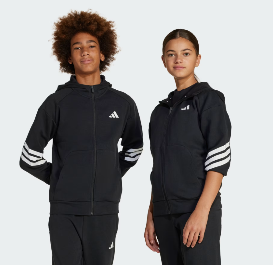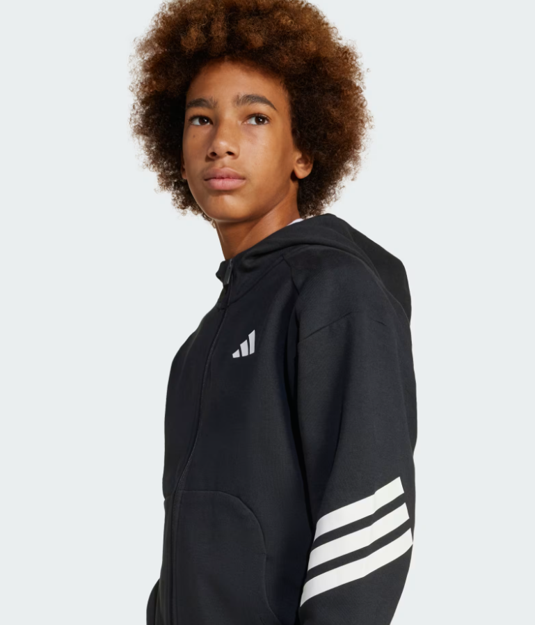 Quando la comodità chiama, questa giacca da tuta junior risponde. È realizzata in tessuto morbido e liscio, comodo da indossare in movimento. I polsini e l'orlo a coste proteggono dal freddo, e le 3 strisce sulle maniche mostrano il tuo orgoglio adidas. Indossala con la zip sopra la tua maglietta preferita per un ulteriore strato di stile e calore.