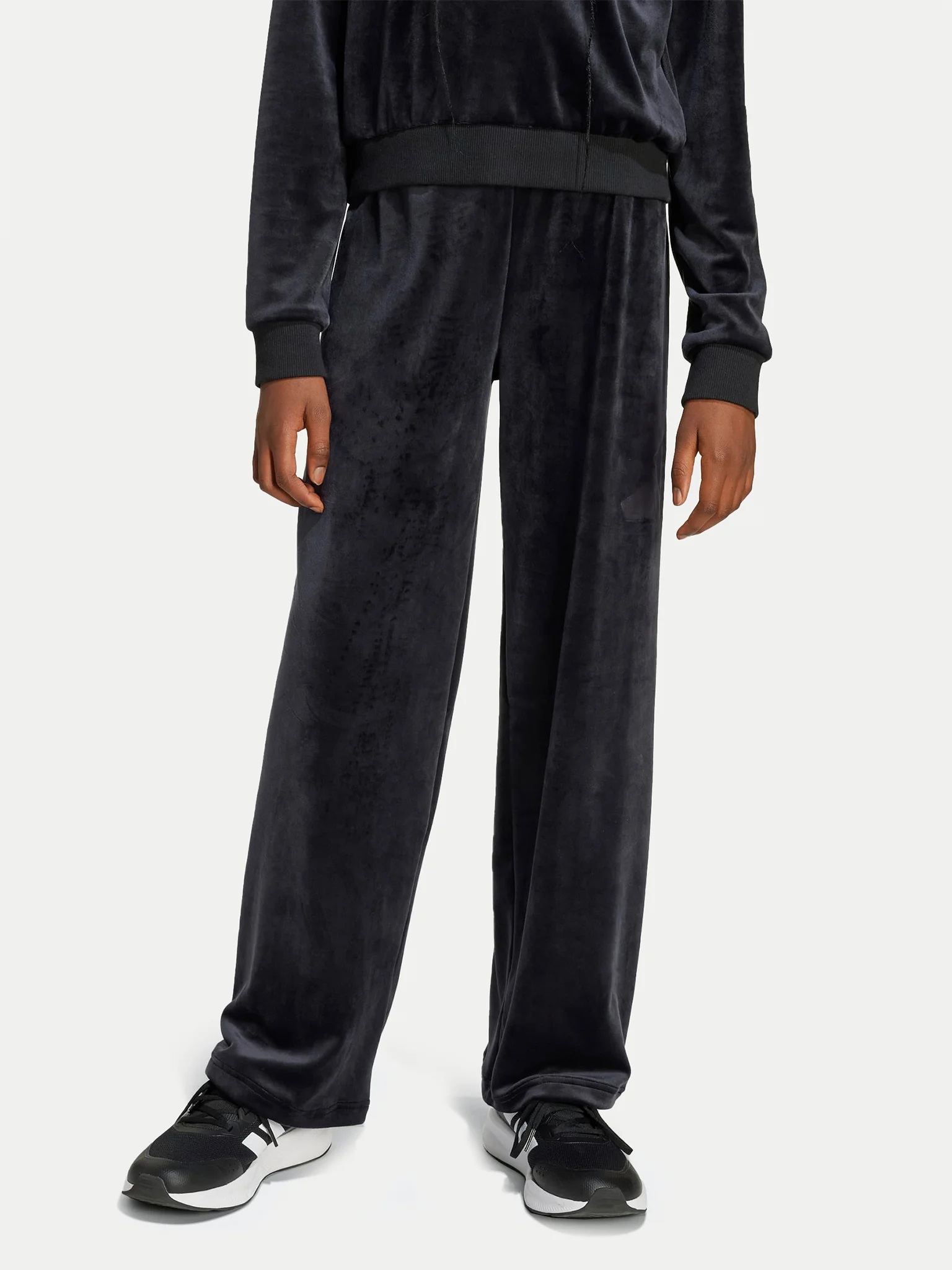 adidas pantaloni della tuta per bambini realizzati in maglina di velluto. L poliestere garantisce una maggiore resistenza alle sgualciture.