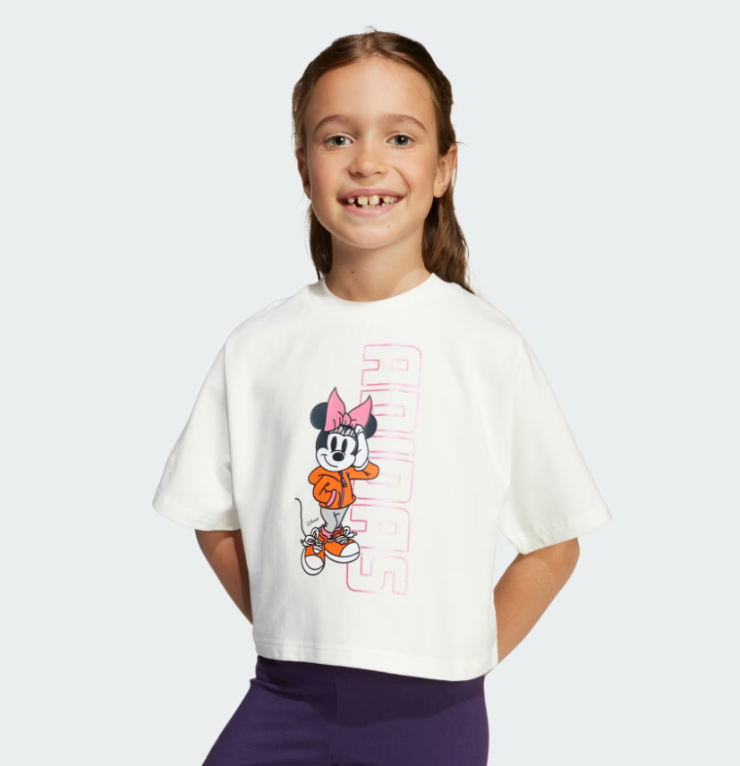 Le bambine che amano Minnie troveranno un motivo in più per sorridere con questa t-shirt adidas per bambini. È pensata per il gioco, con tessuto morbido e un taglio ampio e rilassato. Presenta una silhouette sportiva leggermente accorciata e una grafica esclusiva di Minnie sul davanti che aggiunge un tocco magico allo stile casual.