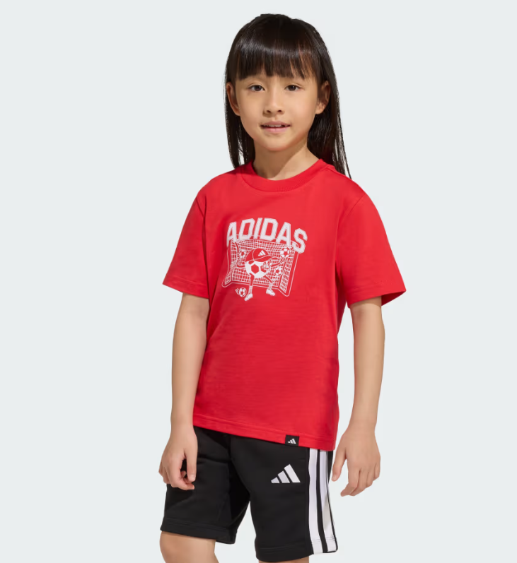 La t-shirt grafica da calcio per bambini è progettata per catturare l'entusiasmo e l'unità del gioco, diventando un successo tra i più giovani e supportando il loro stile di vita attivo. La t-shirt in jersey singolo offre una sensazione morbida e confortevole per l'uso quotidiano. Con una vestibilità regolare, crea uno stile rilassato e facile da indossare, permettendo ai bambini di muoversi liberamente durante il gioco o l'allenamento sportivo. Il design casual e accattivante la rende una scelta versatile per diverse attività, sia a scuola che con gli amici. L'impegno di adidas per la qualità e il comfort traspare da questa t-shirt. Lascia che il tuo bambino esprima con stile la sua passione per lo sport.