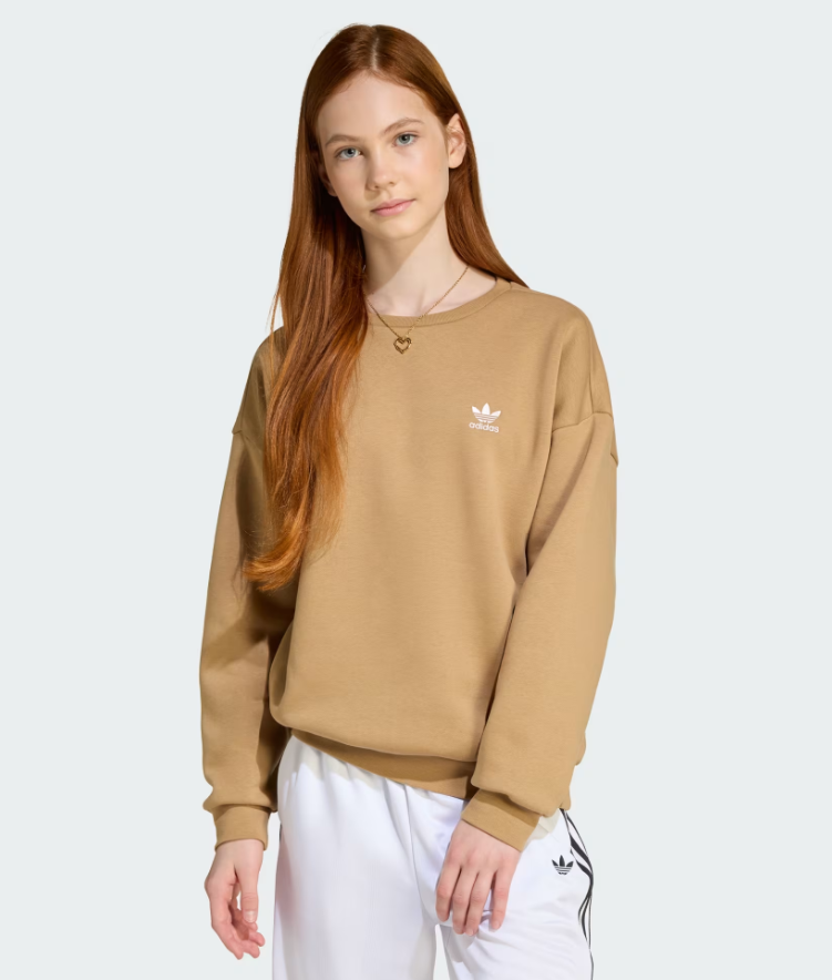 Le serate comode e le giornate casual richiedono una felpa casual che si adatti al tuo stile. Questo pullover da bambino dalla vestibilità ampia abbina un morbido pile a tonalità neutre per un look comodo ed elegante. Il logo del Trifoglio ricamato sul petto aggiunge un tocco di stile sportivo adidas.