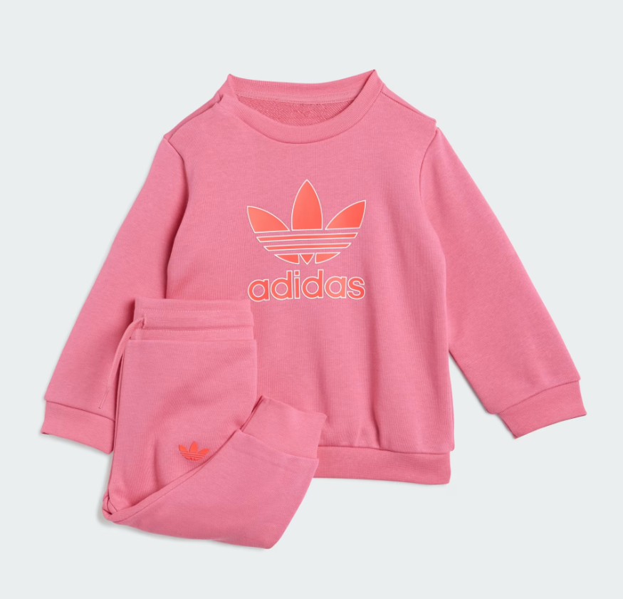 Questo completo da neonato adidas è all'insegna del comfort e della flessibilità. La maglia e i pantaloni sono realizzati in morbido tessuto French Terry per una sensazione di morbidezza e comfort. La maglia ampia offre ampio spazio di movimento e i pantaloni elasticizzati in vita sono facili da cambiare. Un grande logo del Trifoglio sul petto aggiunge un tocco di stile tradizionale.