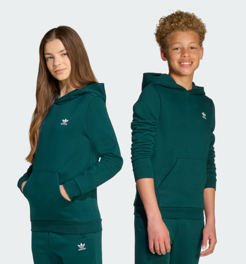 Resta al caldo con questa felpa con cappuccio adidas. Il pile riciclato li avvolgerà in un abbraccio caldo, mentre i polsini e l'orlo a costine trattengono il calore. Il logo Trefoil ricamato sul petto li collega a una tradizione di innovatori che hanno osato tracciare la propria strada.