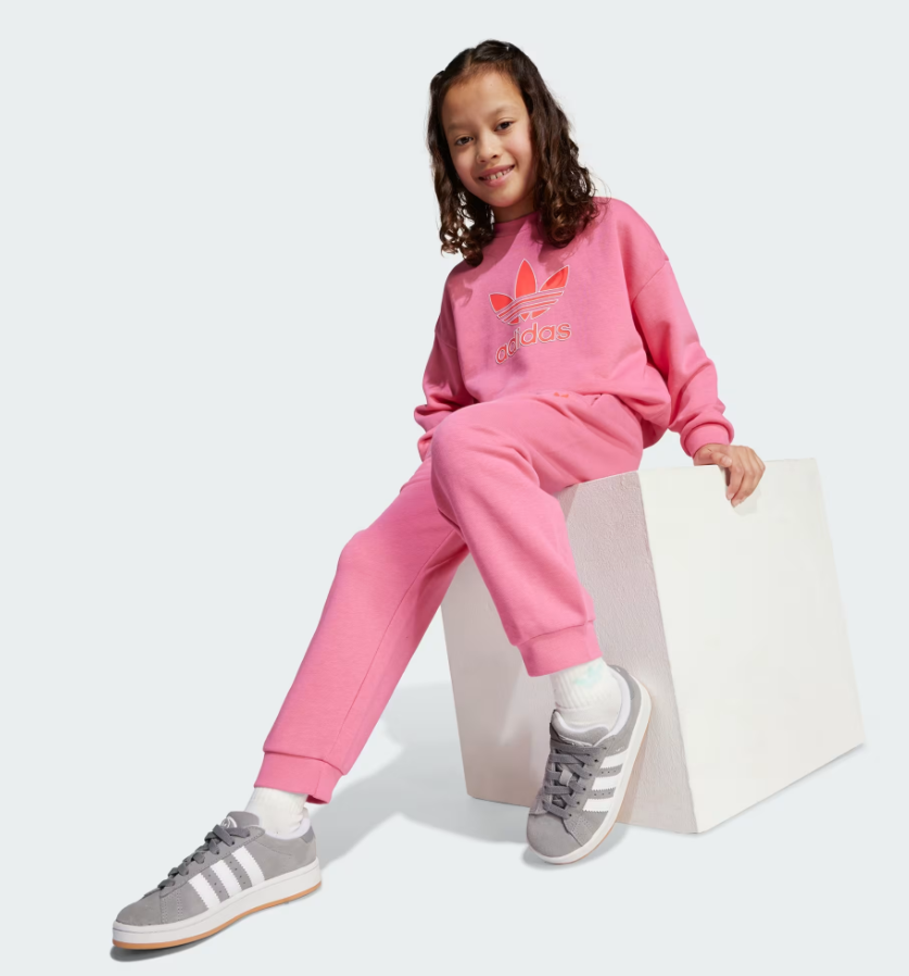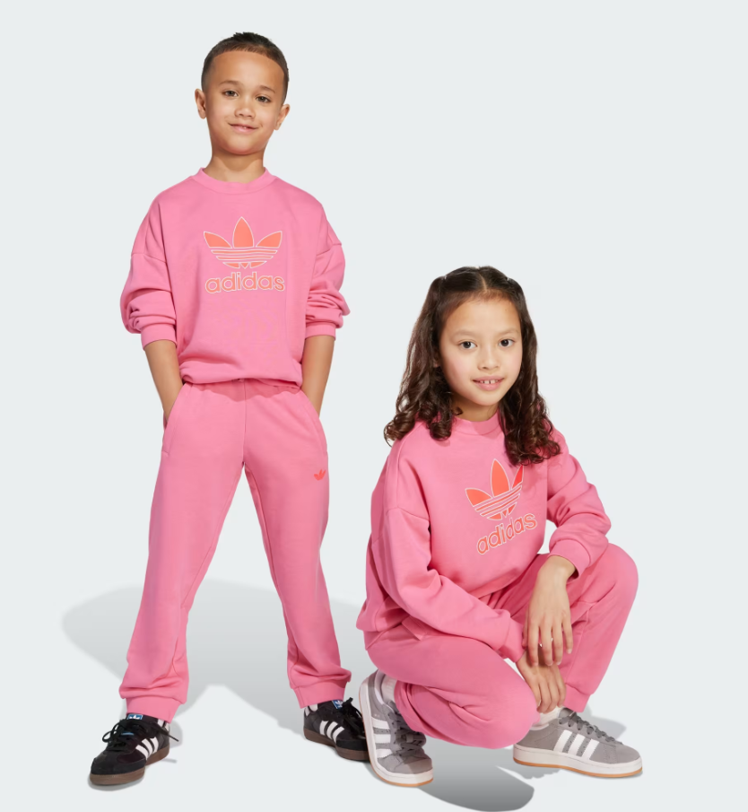 Questo completo adidas permette ai bambini di esprimere la loro creatività. Ispirato allo street style anni '90, il taglio ampio e gli audaci loghi del Trifoglio conferiscono a qualsiasi outfit un tocco di stile immediato. Il morbido tessuto French Terry li mantiene comodi, sia che si avventurino all'aria aperta o si perdano nella lettura del loro libro preferito. Indossato come completo o abbinato ad altri capi, ecco come i bambini vestono casual.