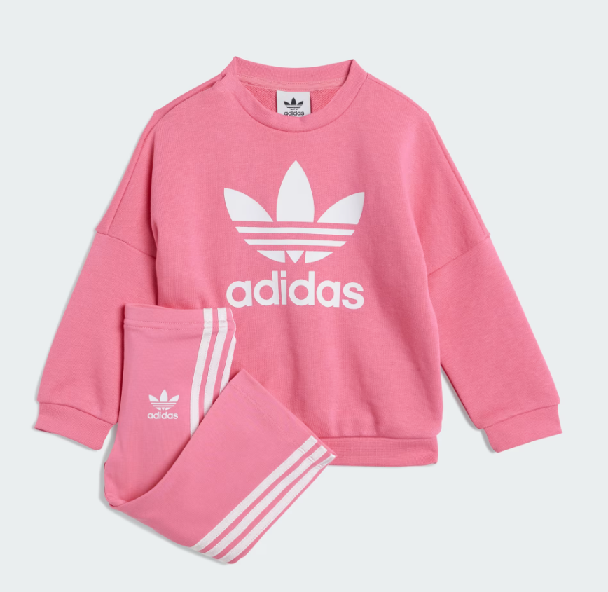 Quando il tuo piccolo ha voglia di esplorare, questo set di leggings e girocollo adidas è pronto all'azione. Il morbido tessuto in spugna francese tiene comodi i più piccoli, mentre i polsini a coste assicurano che le gambe dei pantaloni rimangano al loro posto. Il top dalla vestibilità ampia permette una facile sovrapposizione e un comfort elevato.