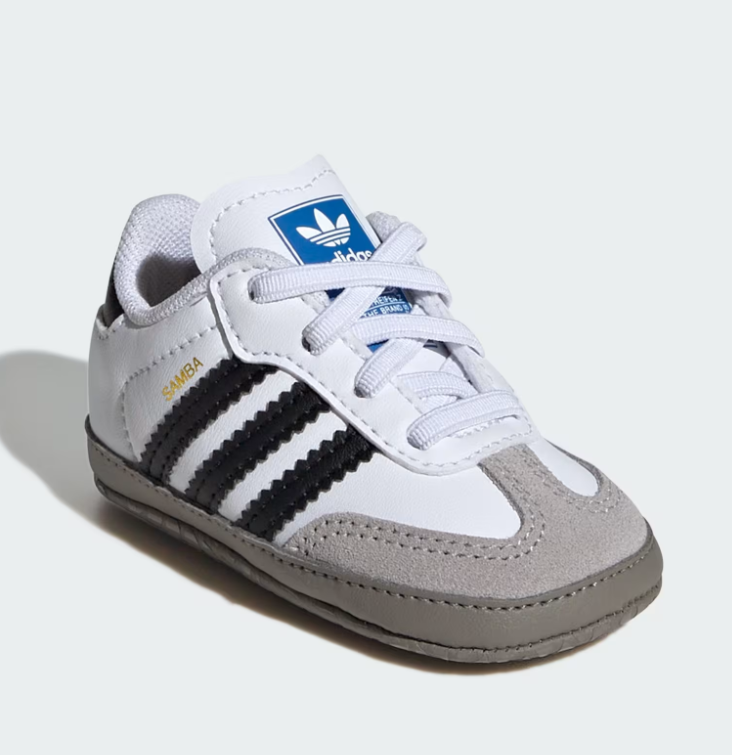 Queste scarpe adidas Samba per neonati regalano uno stile iconico ai piedini dei più piccoli, con la stessa tomaia in morbida pelle, la punta a T in suede e la suola in gomma antiscivolo del classico modello da football degli anni '50. Ora il design apprezzato che ha attraversato generazioni aiuta i più piccoli a trovare il loro equilibrio. Mentre il tuo piccolo calciatore si alza per alzarsi, si accovaccia per sedersi e muove i primi passi traballanti, queste scarpe da ginnastica offrono supporto e lo aiutano ad acquisire una presa sul mondo che lo circonda.