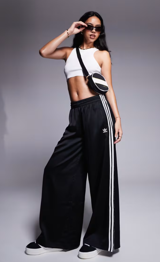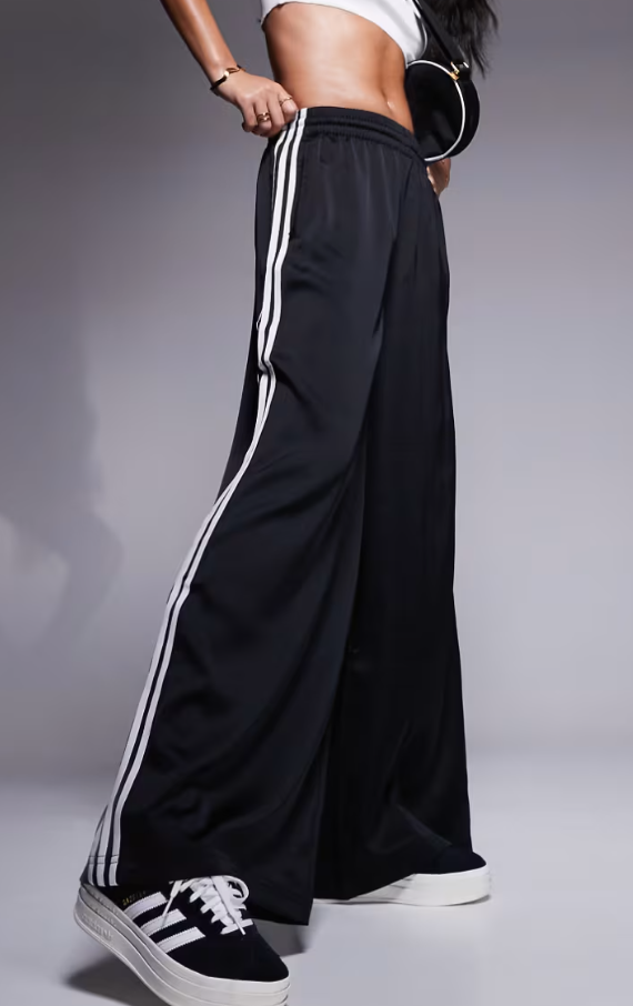 Questi pantaloni da allenamento a gamba larga celebrano la storia di adidas mentre guardano al futuro. La vestibilità ampia il taglio fluido creano una silhouette casual perfetta per muoverti in totale libertà. Realizzati in satin premium, emanano un senso di raffinatezza in grado di trasformare una serata fuori o un brunch casual. Le iconiche 3 strisce lungo i lati delle gambe aggiungono un tocco senza tempo.