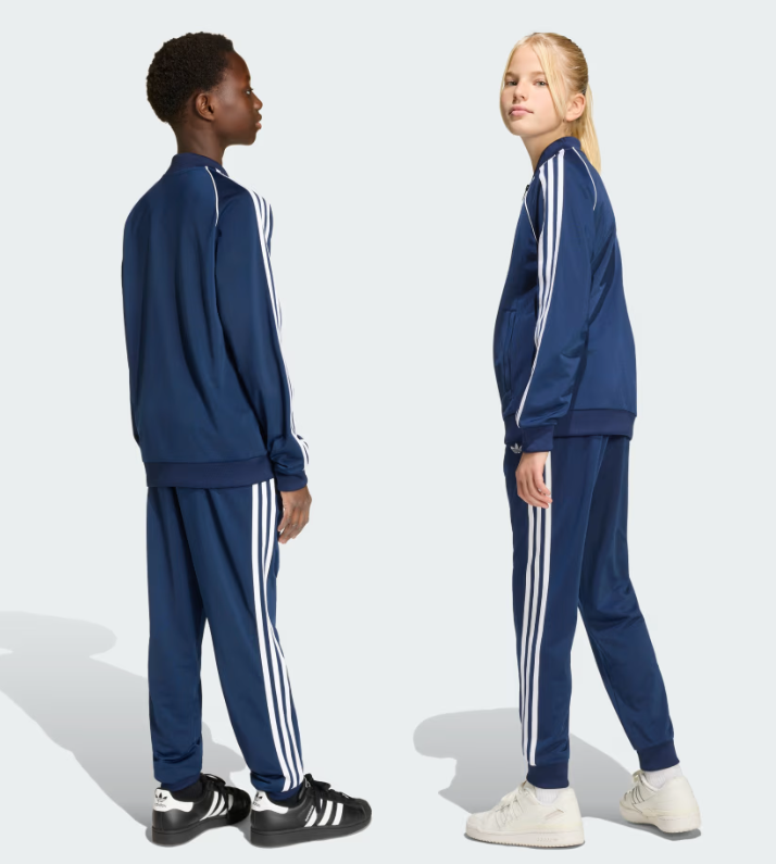La loro vestibilità regolare garantisce facilità di movimento, permettendo ai giovani di esprimere il loro stile con facilità. Il logo del Trifoglio ricamato aggiunge un tocco iconico, mentre la chiusura con cordino offre una comoda tenuta per un uso quotidiano sicura.