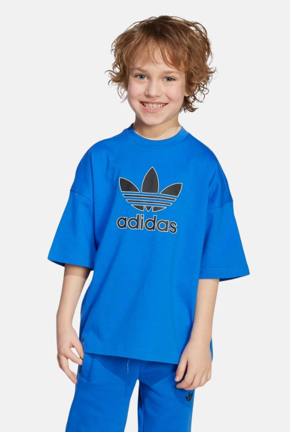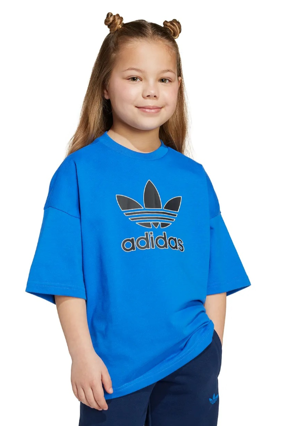 ADIDAS ORIGINALS T-shirt a manica corta Trefoil blu per bambino e bambina. Una classica maglietta per le avventure di tutti i giorni, questa t-shirt da bambino di adidas è sinonimo di comfort e stile. Il logo del Trifoglio in evidenza sul davanti le conferisce un look audace, mentre la vestibilità ampia è perfetta per gli strati. Realizzata in morbido jersey, è pronta per qualsiasi cosa la giornata porti. Si consiglia un lavaggio ed una stiratura a media temperatura.