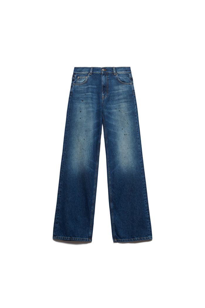 Con la loro linea ampia e il lavaggio vintage, i jeans Frida sono un tributo all’estetica street più autentica. Il trattamento washed con macchie di colore dona al design carattere e unicità, mentre il taglio cinque tasche dalla vestibilità rilassata rende il capo pratico per affrontare la città con carisma.