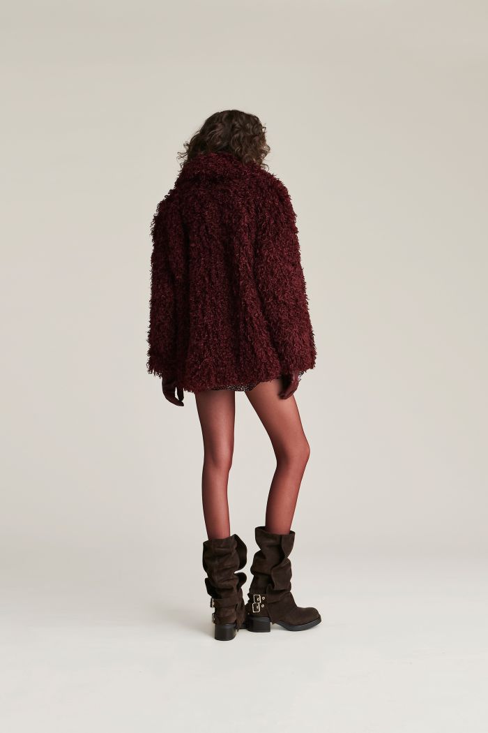 Voluminosa e teatrale, la giacca Poison è l’alleata perfetta per chi ama osare. Realizzata in faux fur effetto fluffy, conquista per il taglio boyfriend dal revers pronunciato. La struttura è ammorbidita dalla texture soffice e avvolgente che la eleva a pezzo chiave del glam metropolitano.