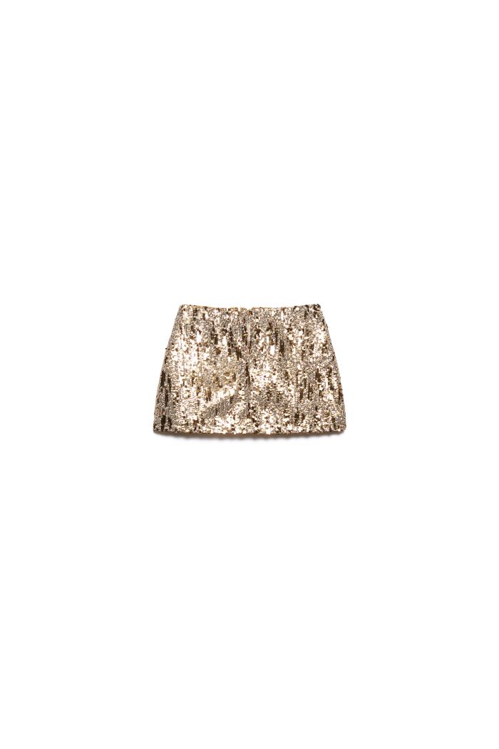 Realizzata in tessuto full paillettes, la minigonna Lulù interpreta con sicurezza le serate più glam. Il carattere magnetico del capo è bilanciato dal taglio essenziale, con chiusura zip per una vestibilità impeccabile. Da indossare con blazer over e bluse trasparenti per un equilibrio di stili e volumi.
