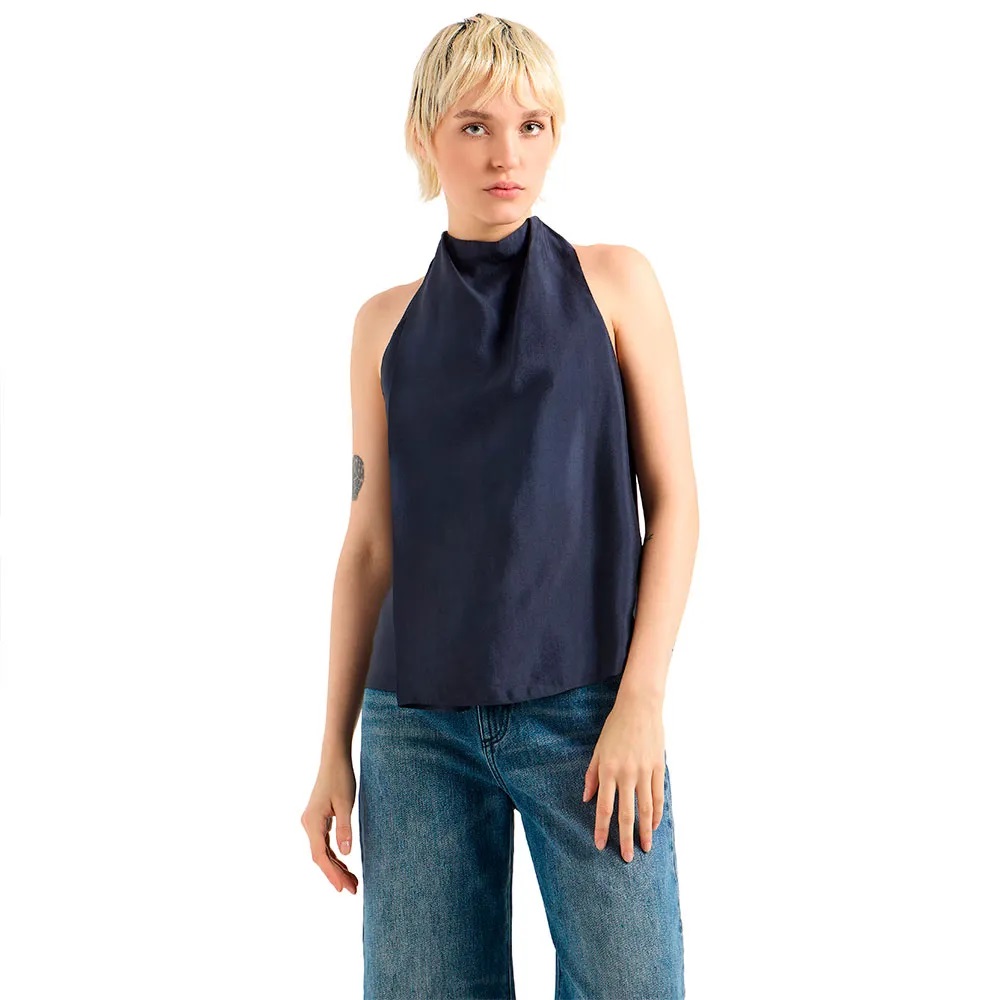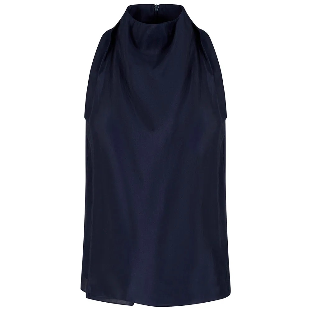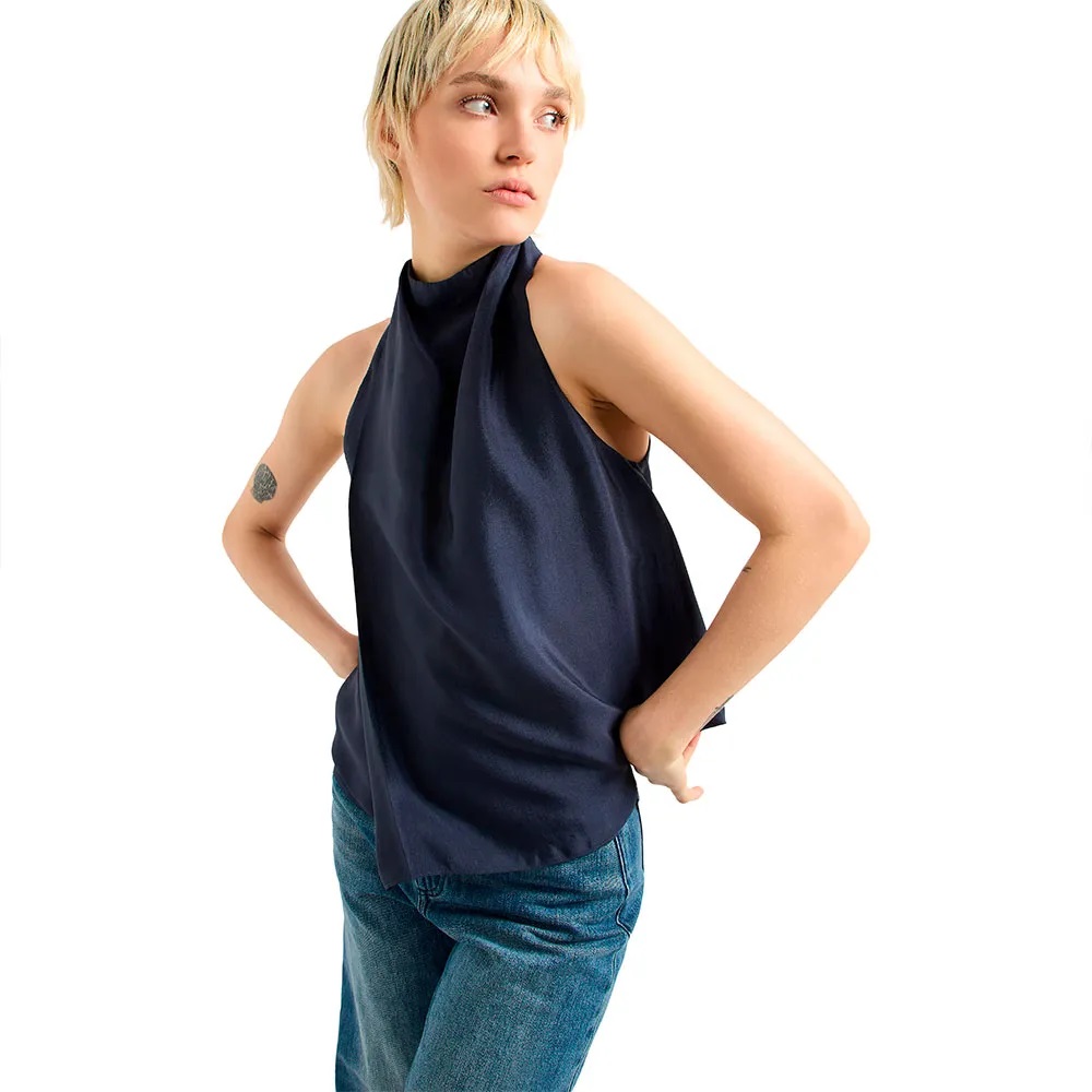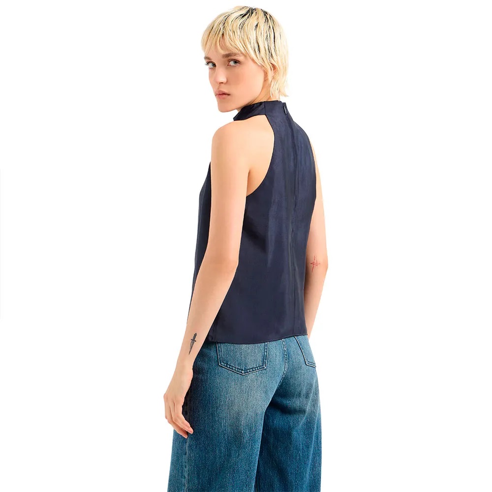 Blusa senza maniche, collo alto e vestibilità svasata, chiusura con zip sul retro e logo patch sull´orlo.