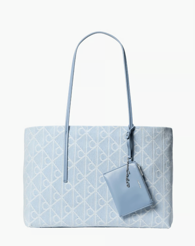 emblem aop denim tote w/pouch