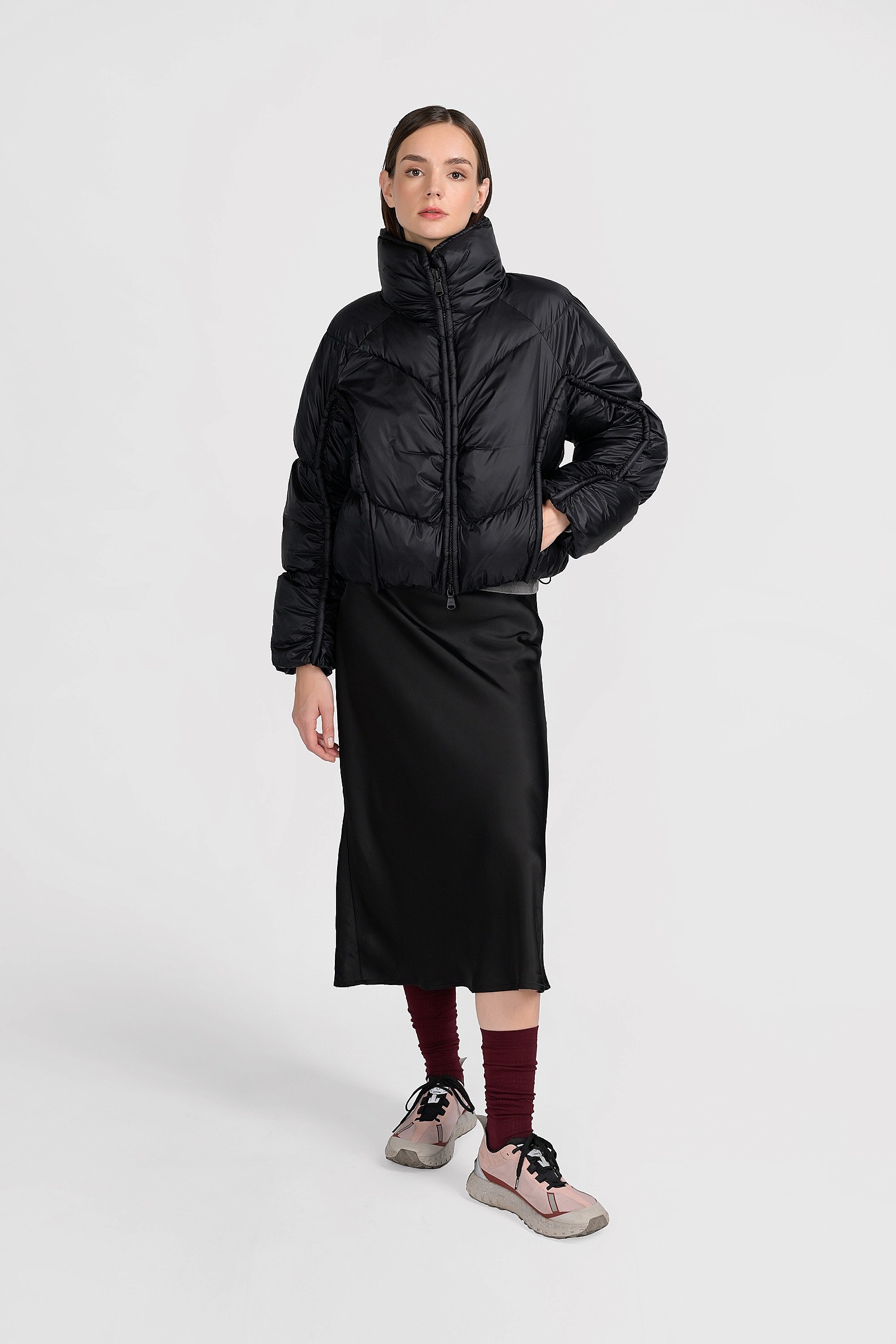 Compatto e versatile, Camille Short è un piumino corto in nylon shiny, dal finish lucido e contemporaneo. Il design pulito è impreziosito dall?effetto brillante del tessuto, mentre l?imbottitura 3D garantisce volume e comfort. Ideale per look invernali raffinati ma dinamici.