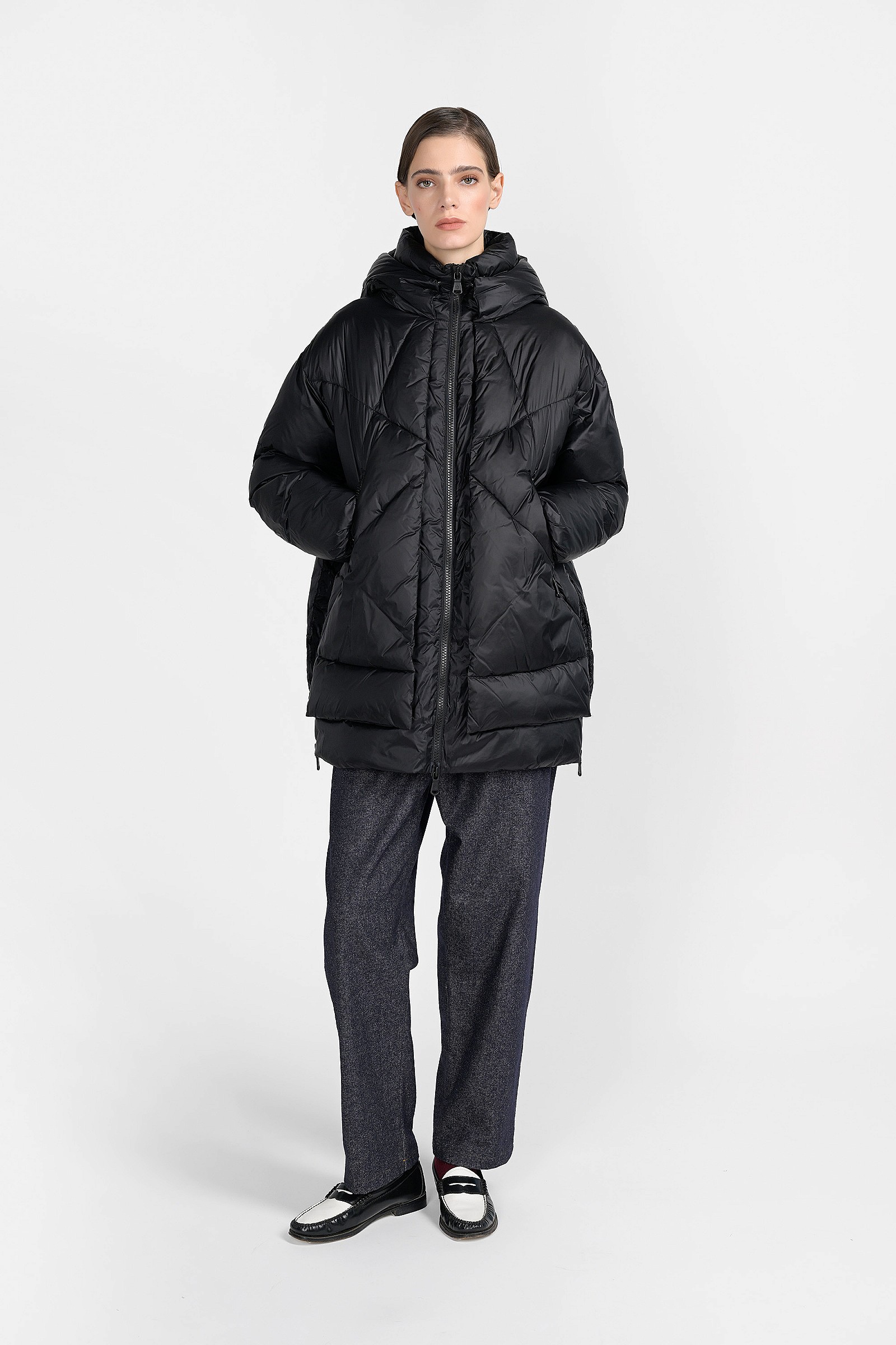Piumino lunghezza tre quarti con cappuccio integrato. Quando fa davvero freddo, una giacca lunga è quello che ci vuole per tenerci il più possibile al caldo. Questa meravigliosa giacca non fa di certo eccezione. La gamma di colori è così accattivante che il tuo unico problema sarà decidere quale scegliere.Il piumino esterno bistrato presenta una finitura 100% nylon satin, mentre l'imbottitura è 100% poliestere. Le due tasche con zip e il cordoncino sul bordo inferiore consentono al cappotto di avvolgere le gambe, evitando che congelino a ogni folata di vento. Inoltre, i lati sono dotati di zip di estensione, così da muoverti con maggiore comfort anche quando indossi maglioncini più spessi. Un cappuccio ripiegabile offre riparo alla testa quando necessario.Una giacca che sta bene con tutto, che si tratti di un jeans casual o di una gonna elegante con gli stivali: sarai magnifica in qualsiasi occasione.