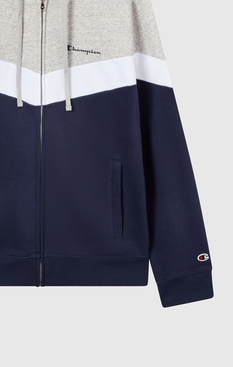 Questo completo sportivo full zip unisce comfort e carattere. Il tessuto in Fleece da 280 g/m² assicura morbidezza e calore, mentre il design con bande a contrasto sul petto dona un tocco distintivo al look sportivo.