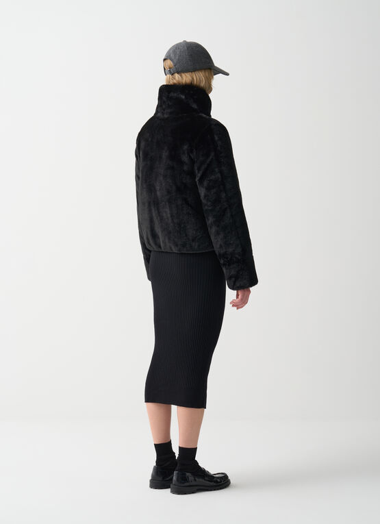 Perfetta per ogni occasione, questa giacca da donna reversibile unisce la morbidezza e l'eleganza della pelliccia sintetica da un lato e la praticità e il calore della piuma trapuntata dall'altro. Arricchita da tasche laterali e un caldo collo, unisce funzionalità e sofisticatezza.