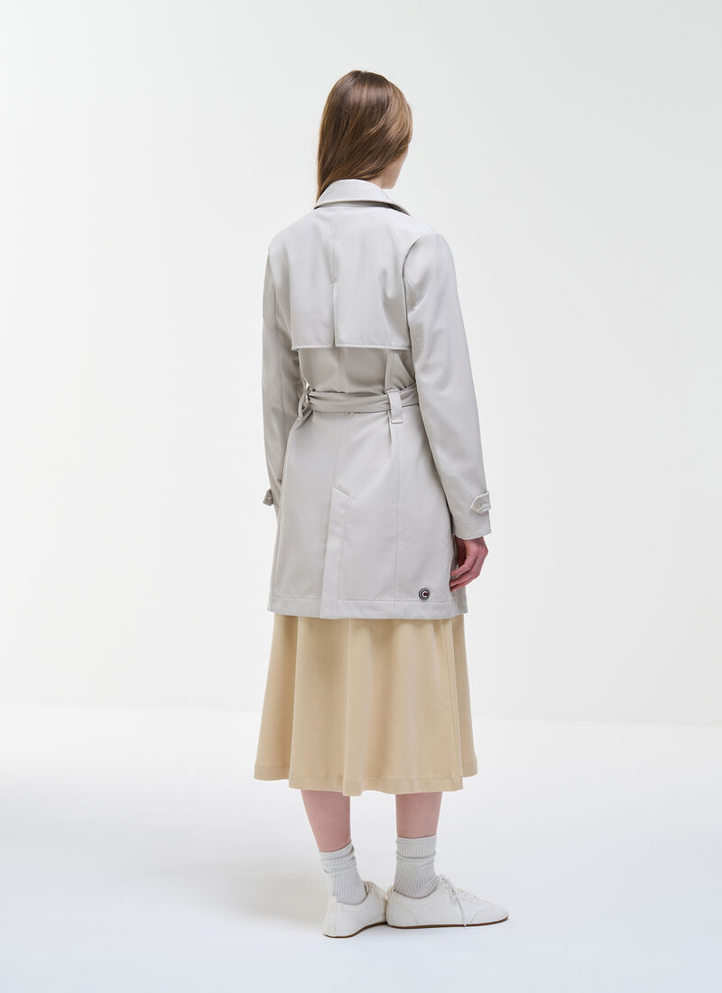Il design sartoriale di questo trench da donna valorizza la silhouette femminile con dettagli classici ed eleganti. La cintura definisce il punto vita, mentre la chiusura doppiopetto con bottoni e il collo a revers completano il look con raffinatezza. Realizzato in tessuto a tre strati con trattamento antigoccia, assicura protezione dal maltempo e un perfetto equilibrio tra stile e funzionalità.