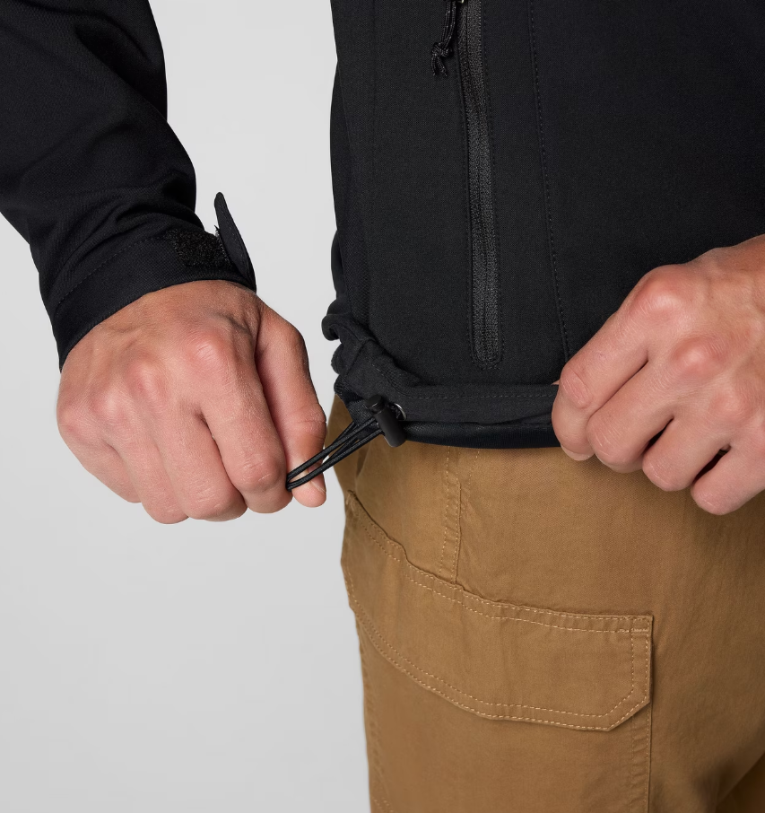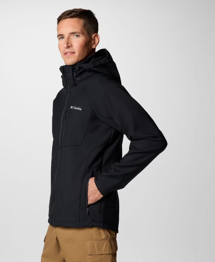 Affronta i sentieri grazie a questa giacca softshell con finitura impermeabile, cappuccio rimovibile e fondo e polsini regolabili per allontanare il freddo mentre sei in movimento.