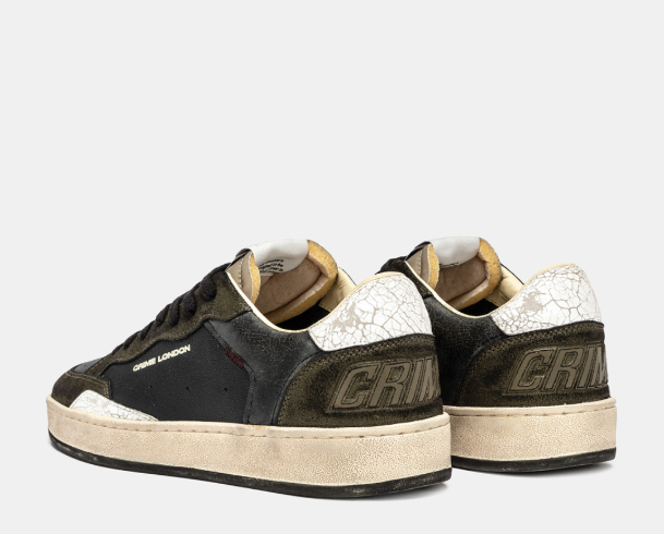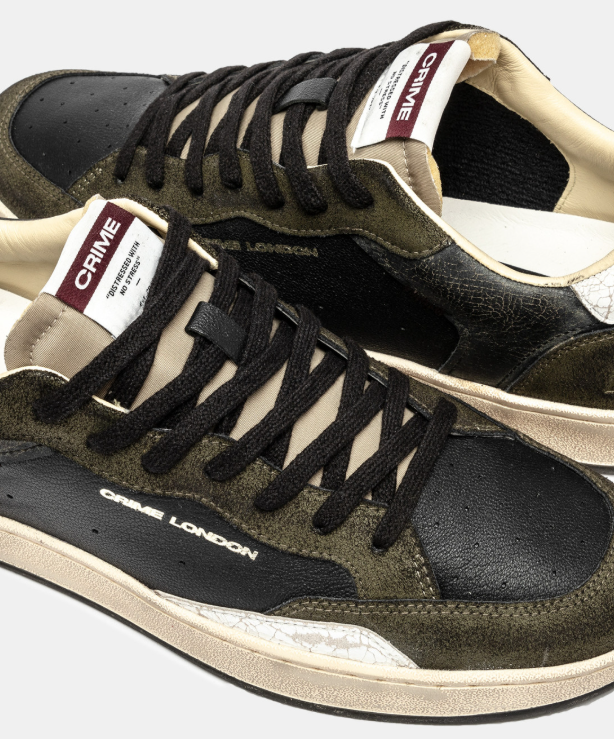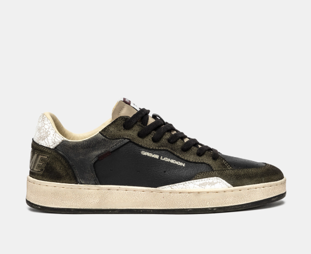 Tomaia in pelle nero, dettagli in suede spalmato verde scuro