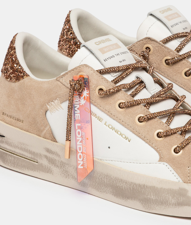 Tomaia in pelle e suede bianca e taupe, dettagli in pelle bianca