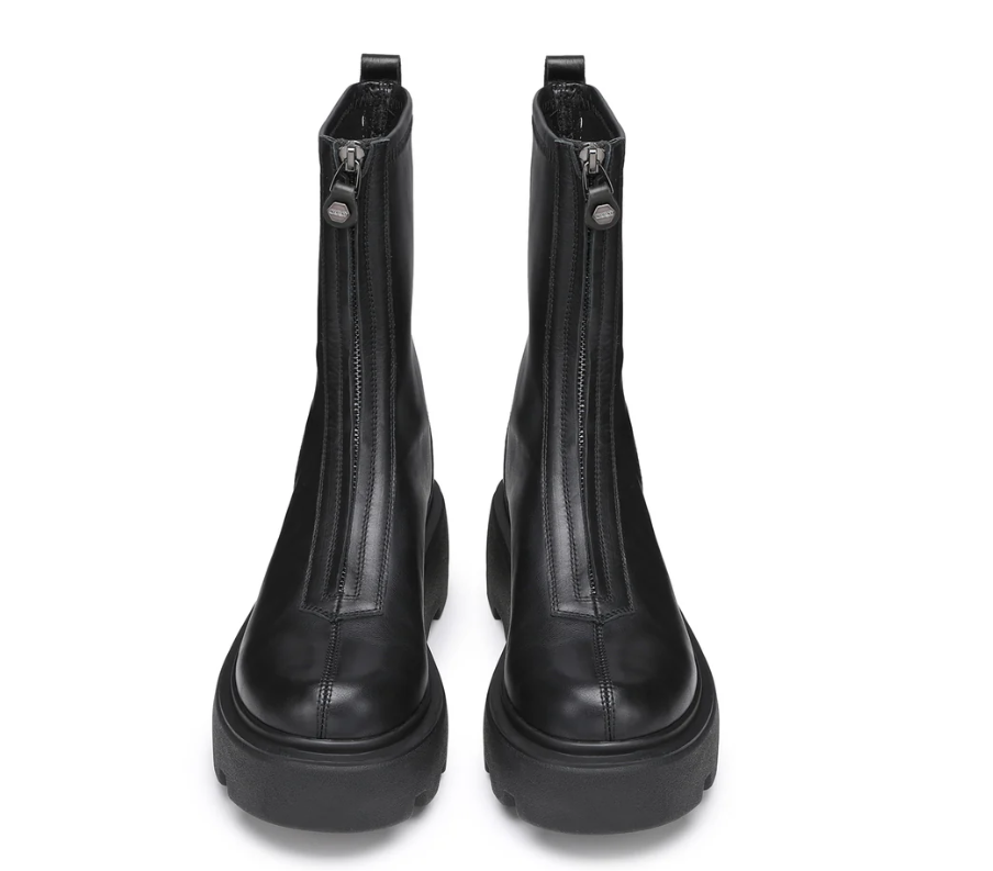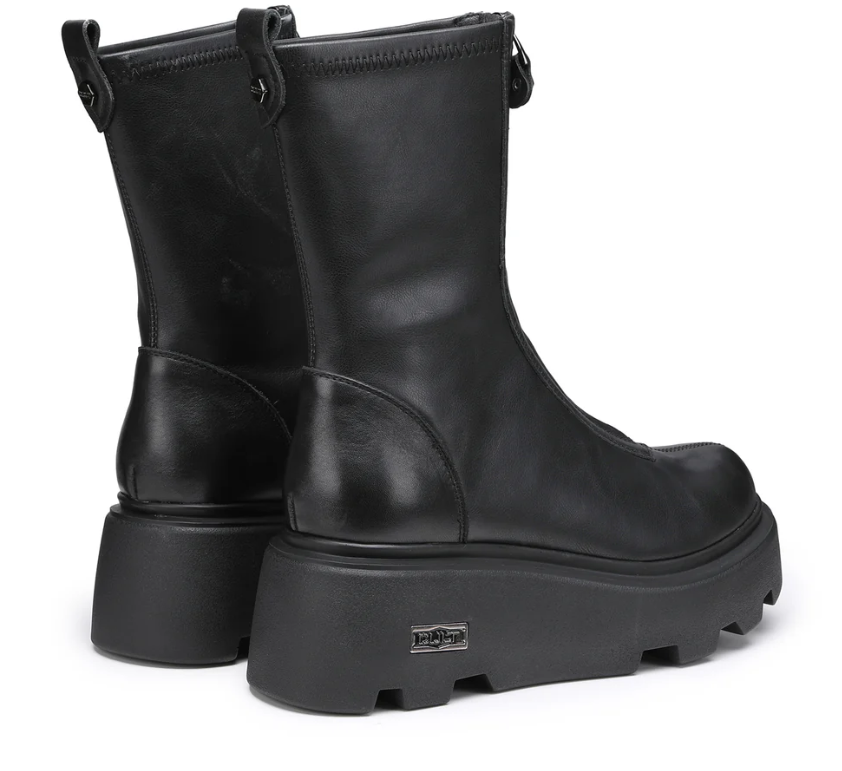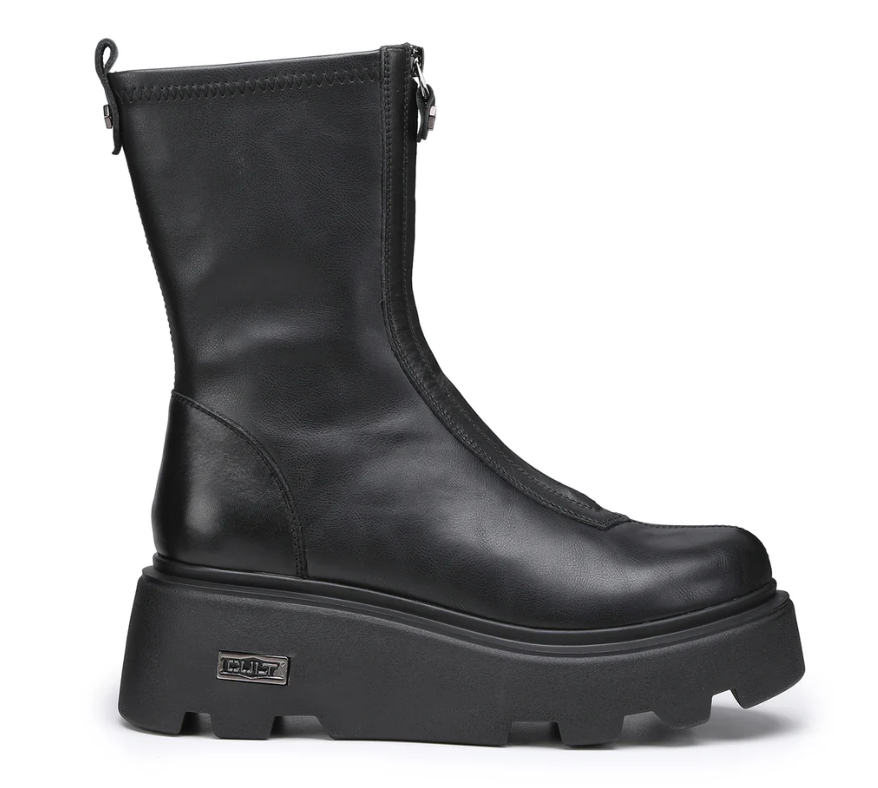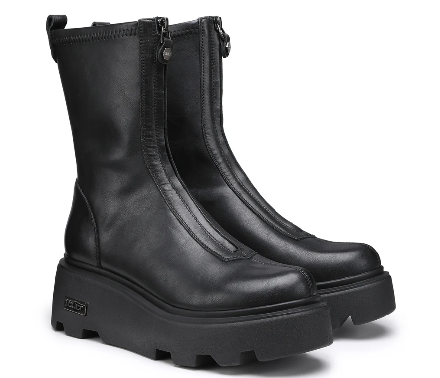 Date una marcia in più ai vostri outfit indossando questi stivaletti firmati Cult. Il design di tendenza in pelle nera attraversato da una zip frontale, presenta la suola platform scanalata.