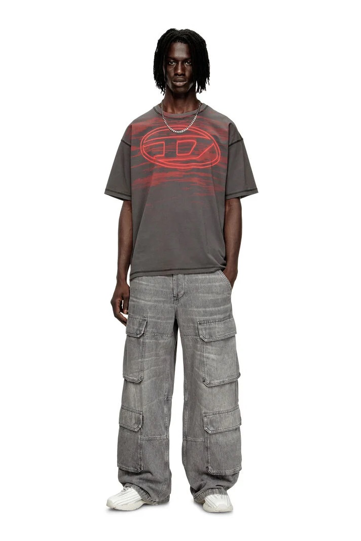 Maglietta in cotone con maniche corte e fit rilassato. Il girocollo ha una rifinitura a costine mentre frontalmente c'è una grande stampa Oval D.