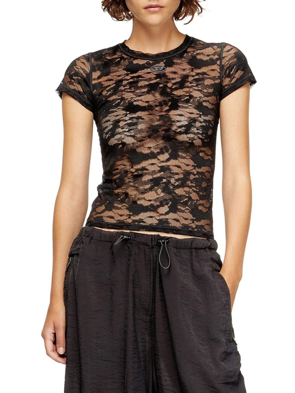 La Maglia Kasia Donna di Diesel è un capo dallo stile audace e contemporaneo. Realizzata in morbido pizzo stretch con motivo mimetico di ispirazione utility, questa maglia esprime una forte personalità grazie al suo design distintivo. Le maniche ad aletta e il taglio aderente valorizzano la silhouette femminile, mentre il logo Oval D aggiunge un tocco iconico al look.