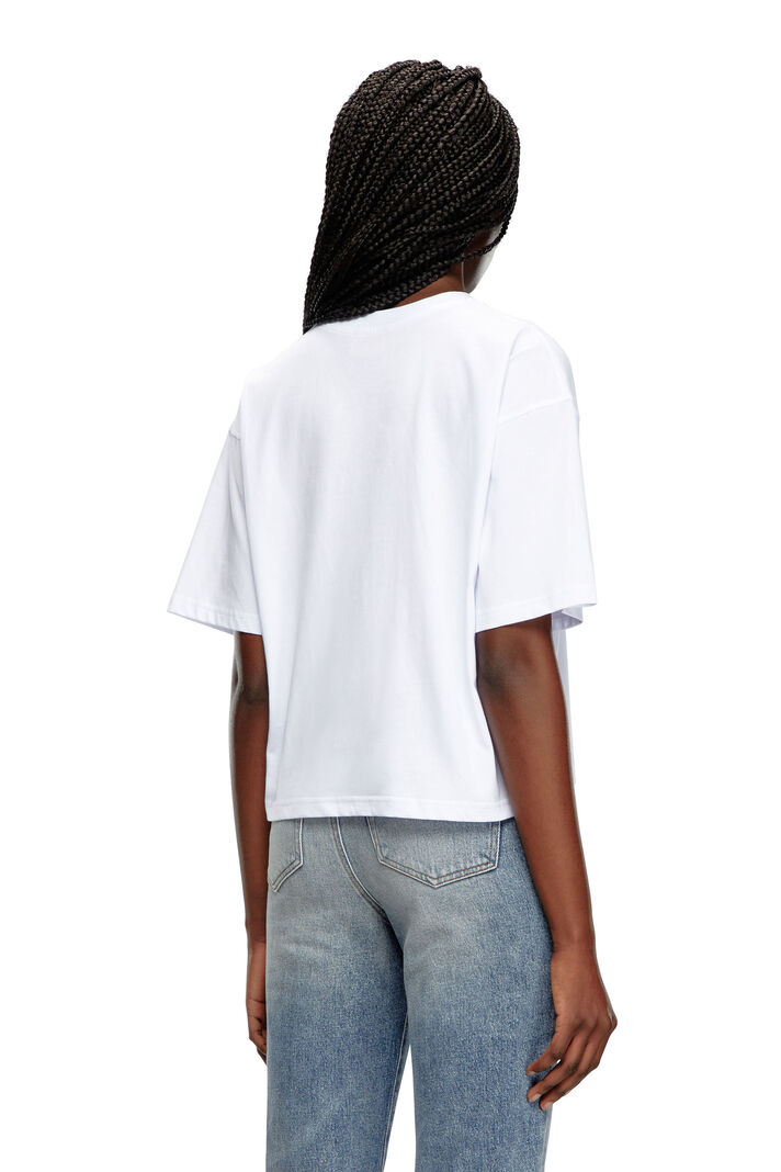T-shirt da donna realizzata in cotone biologico. La silhouette boxy e oversize è decorata con il logo Oval D, ricamato e tagliato al laser per creare un gioco di trasparenze.