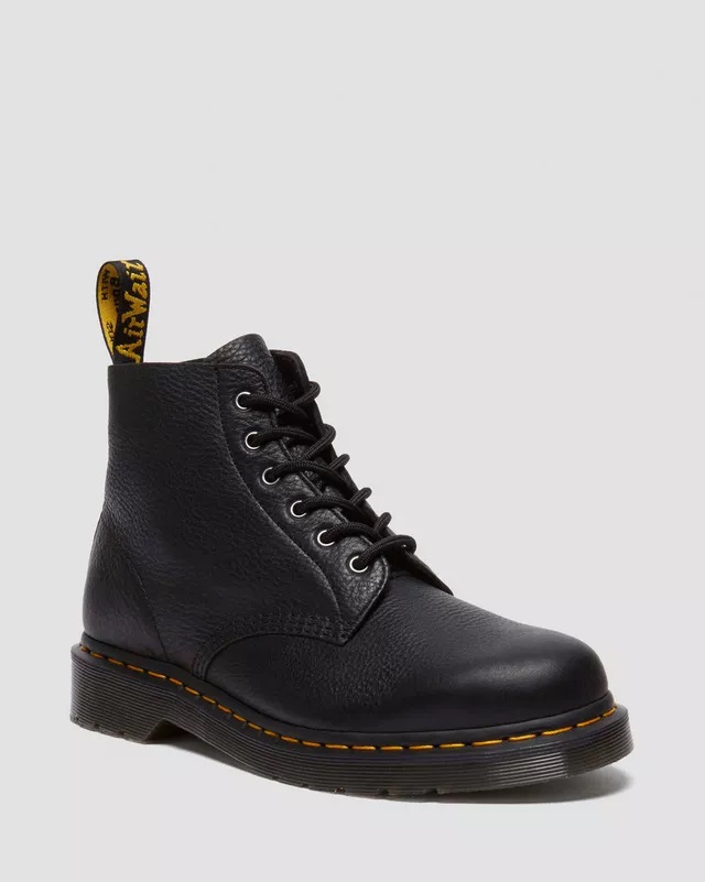 Ci siamo ammorbiditi. Abbiamo rivoluzionato il nostro stivale con lacci 101 a sei occhielli utilizzando la lussuona Ambassador: una pelle morbida dall'aspetto testurizzato e martellato. La sua morbidezza rende il modello Dr. Martens Original ancora più facile da indossare. La suola presenta le classiche rifiniture gialle DM's e il nostro caratteristico motivo scanalato. Sul tallone, troverai sempre l'inconfondibile linguetta gialla e nera AirWair.