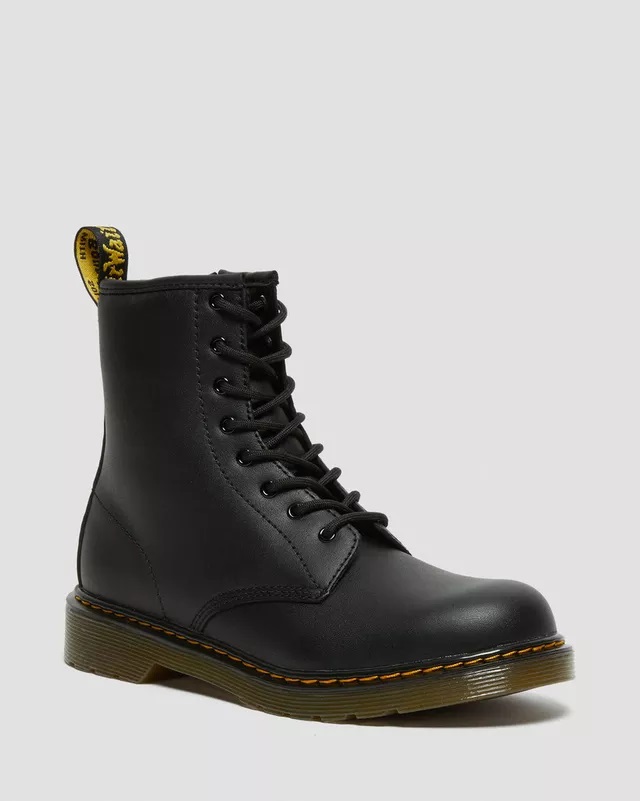 Lo stivaletto Delaney a 8 occhielli offre il massimo sostegno ai piccoli piedi senza scendere a compromessi per quanto riguarda lo stile iconico e lo spirito di Dr. Martens. Realizzato in pelle primo fiore verniciata e con una suola incollata che garantisce comodità e flessibilità, Delaney reca intatto il DNA dell'anfibio 1460: fettuccia posteriore, cuciture gialle, occhielli neri, laccio frontale e anche una zip laterale, per una maggior comodità. La suola è resistente all'usura e garantisce ottime proprietà antiscivolo.