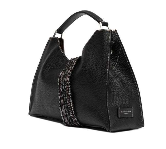 Aurora by Gianni Chiarini Firenze si caratterizzata per una forma trapezoidale. Sinonimo di eleganza contemporanea, è realizzata in pelle double grana maxi ed arricchita da dettagli in metallo. Dotata di una pratica tracolla regolabile e removibile, per una doppia portabilità. Presenta inoltre una chiusura superiore con magnete. Dimensioni: 42x30x10 cm.