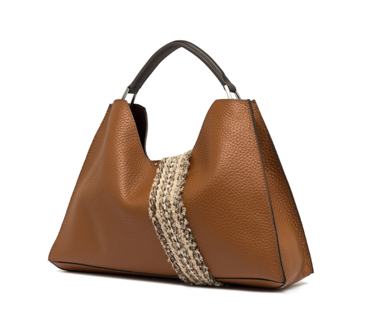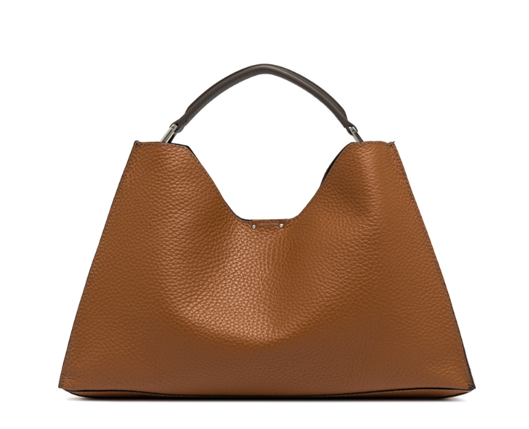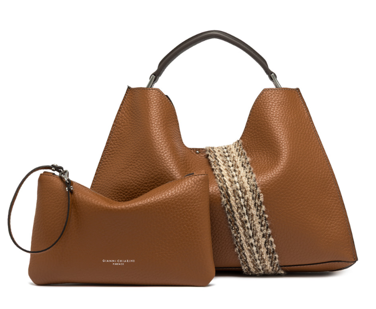 Aurora by Gianni Chiarini Firenze si caratterizzata per una forma trapezoidale. Sinonimo di eleganza contemporanea, è realizzata in pelle double grana maxi ed arricchita da dettagli in metallo. Dotata di una pratica tracolla regolabile e removibile, per una doppia portabilità. Presenta inoltre una chiusura superiore con magnete. Dimensioni: 42x30x10 cm.