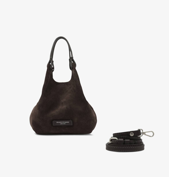 L'icona del brand DUA si distingue per un design semplice, ma contemporaneo. Realizzata in pelle scamosciata, questa minibag è dotata di uno sfoderato monoscomparto, perfetta per un uso pratico. Può essere portata a mano o crossbody grazie alla tracolla di servizio inclusa. Dimensioni: 19x20x8 cm