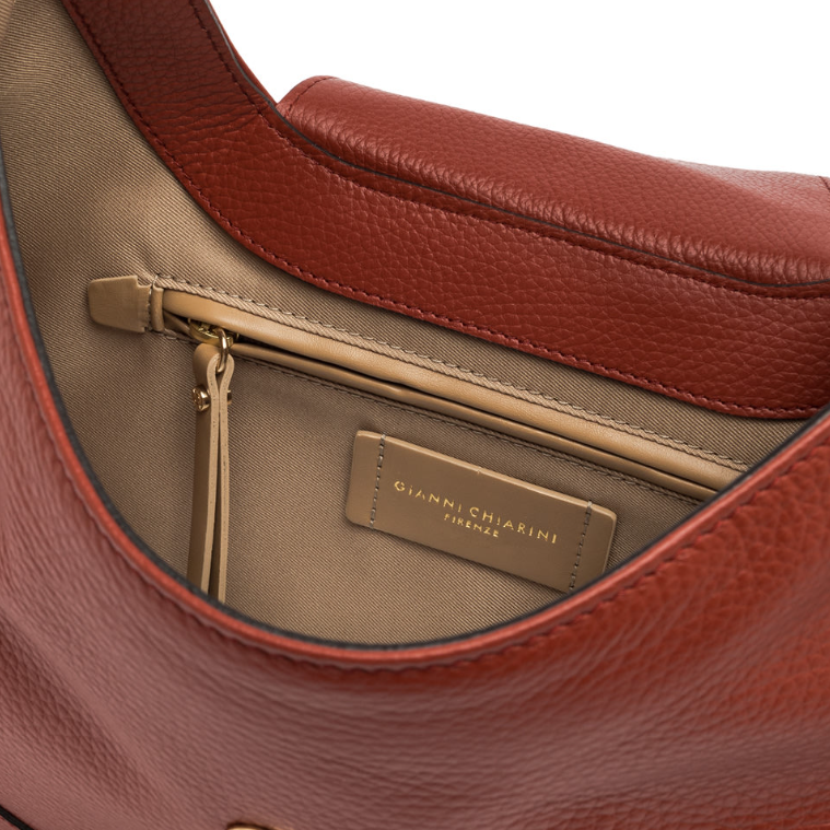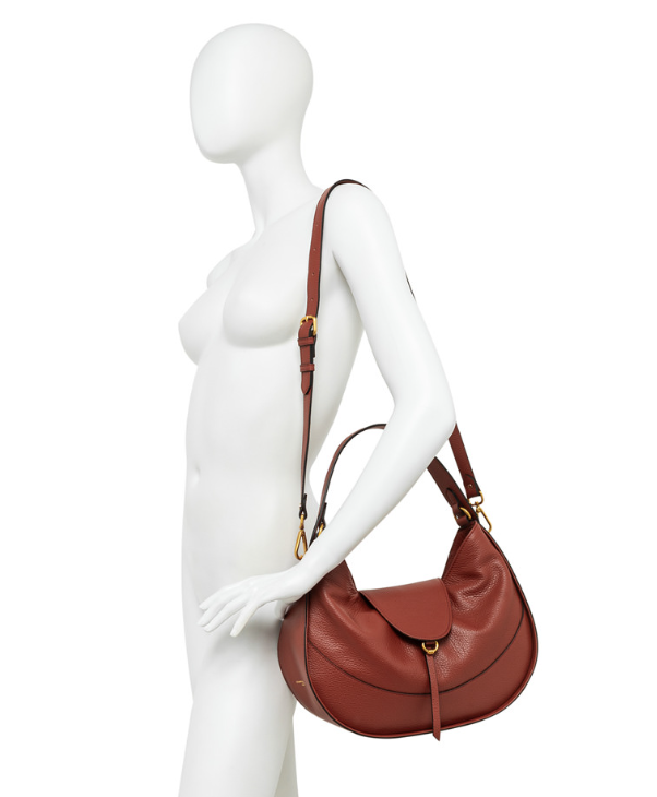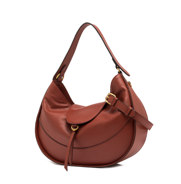 Edith è la nuova borsa versatile e sofisticata, ideale per chi cerca praticità senza rinunciare allo stile. Realizzata in morbida pelle martellata, presenta due comparti distinti per una gestione ottimale degli spazi. Dotata di chiusura con patta in pelle, include una tracolla regolabile e removibile per un uso crossbody e un comodo manico superiore per una portabilità a mano. Dimensioni: 34x29x10 cm.