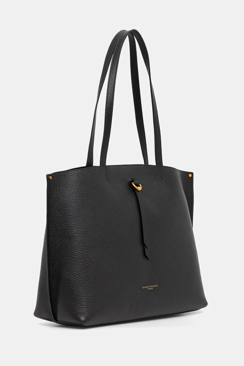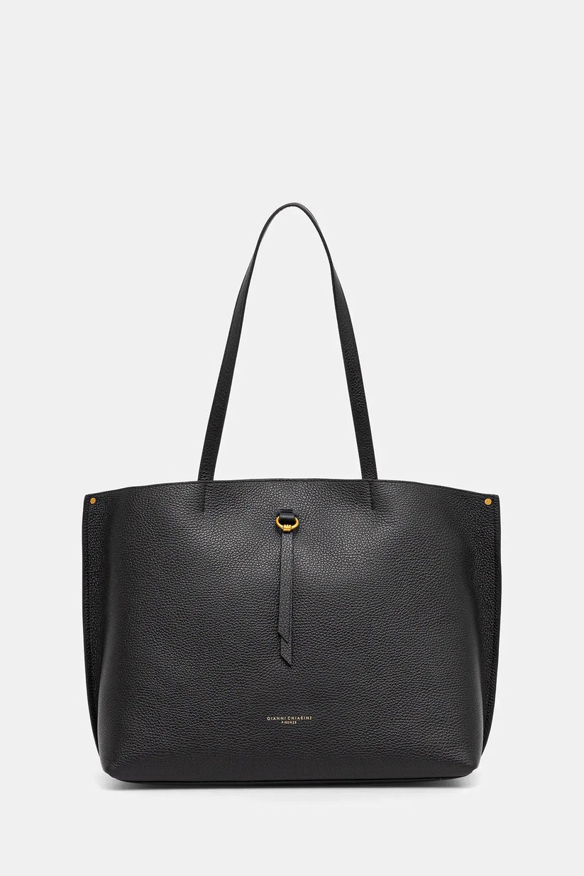 Egle è la borsa spalla by Gianni Chiarini Firenze, versatile e dallo stile ricercato. Realizzata in pelle martellata, presenta un ampio scomparto interno per una facile organizzazione. È impreziosita da un cravattino in pelle e dettagli metallici che aggiungono un tocco di eleganza. Dimensioni: 26x15x35 cm.