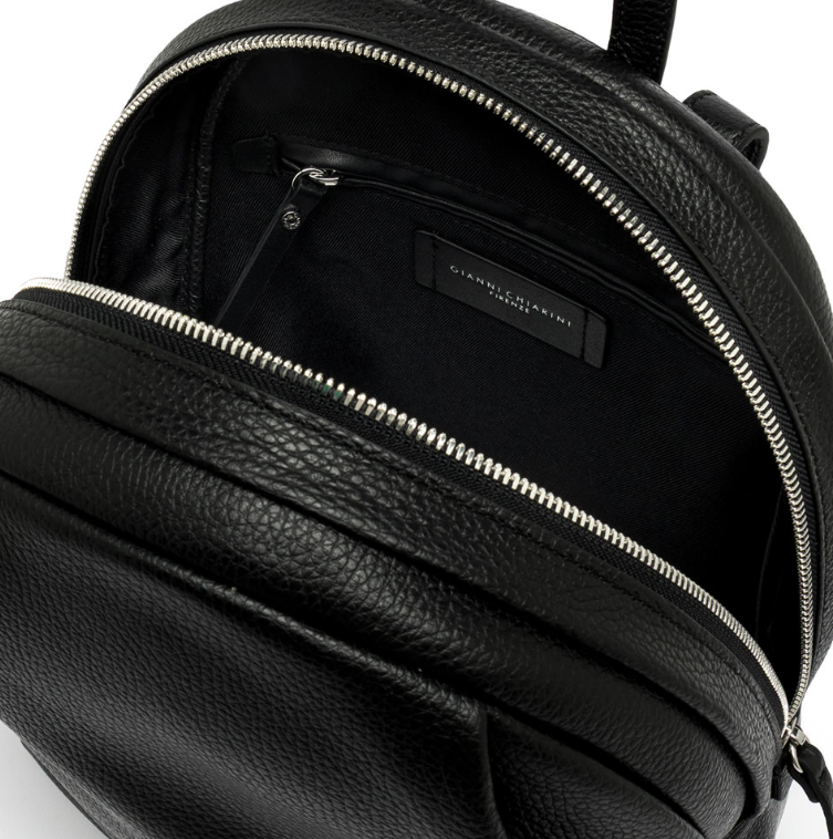 Lo zaino Emanuela è realizzato in morbida pelle martellata. Dal look semplice e disinvolto, presenta un ampio scomparto con zip di chiusura. Dotato di spallacci regolabili sul retro, per un pratico utilizzo daily. Ideale per chi desidera un accessorio compatto e funzionale. Dimensioni: 28x30x12 cm.