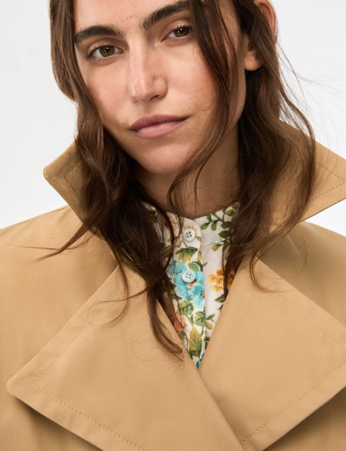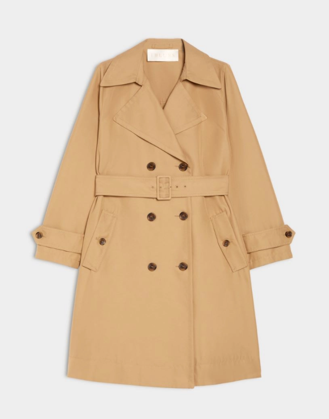 Chiusura doppiopetto con bottoni, cintura con fibbia