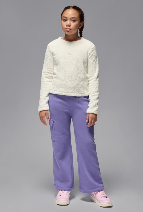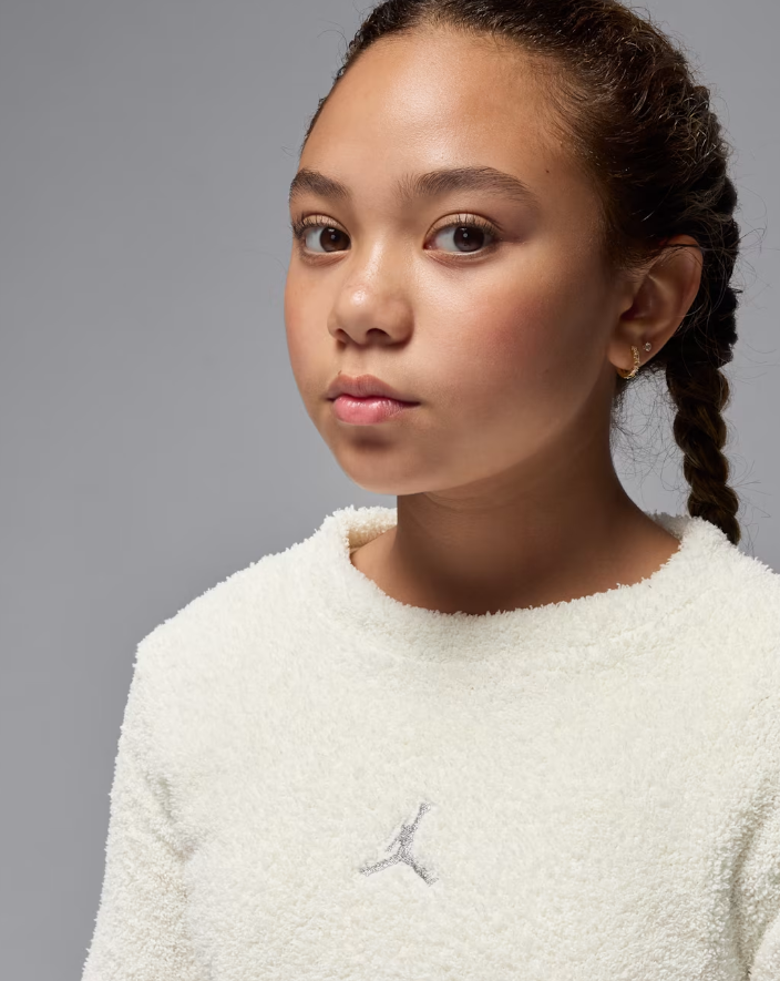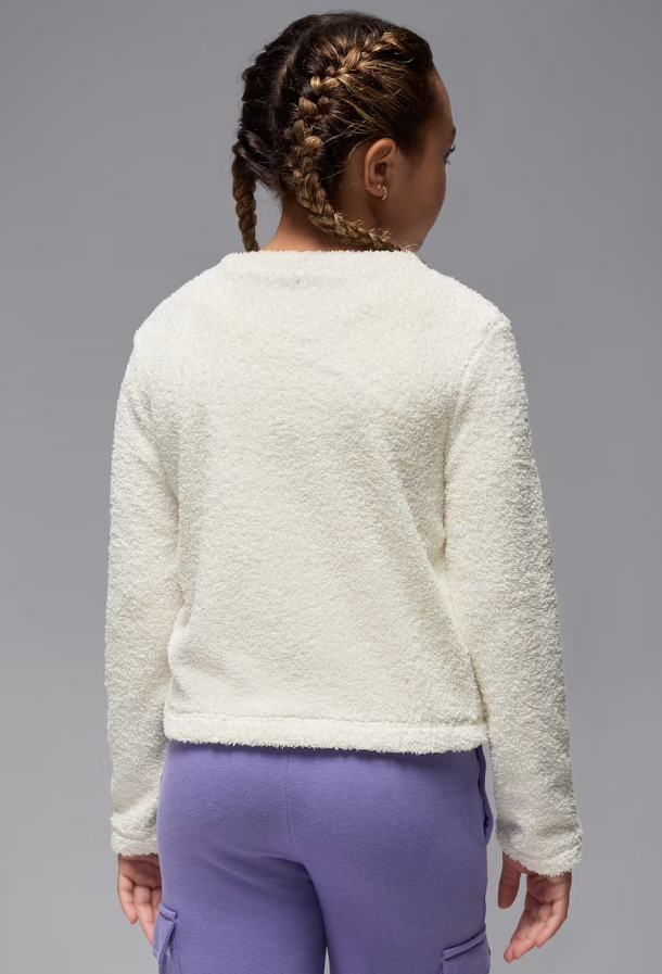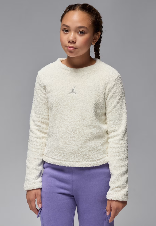 Con il logo Jumpman ricamato in metallo, mettiti comodo con questa maglia girocollo realizzata in morbidissimo pile bouclé, con una silhouette corta e spalle scese che rilassano la vestibilità.