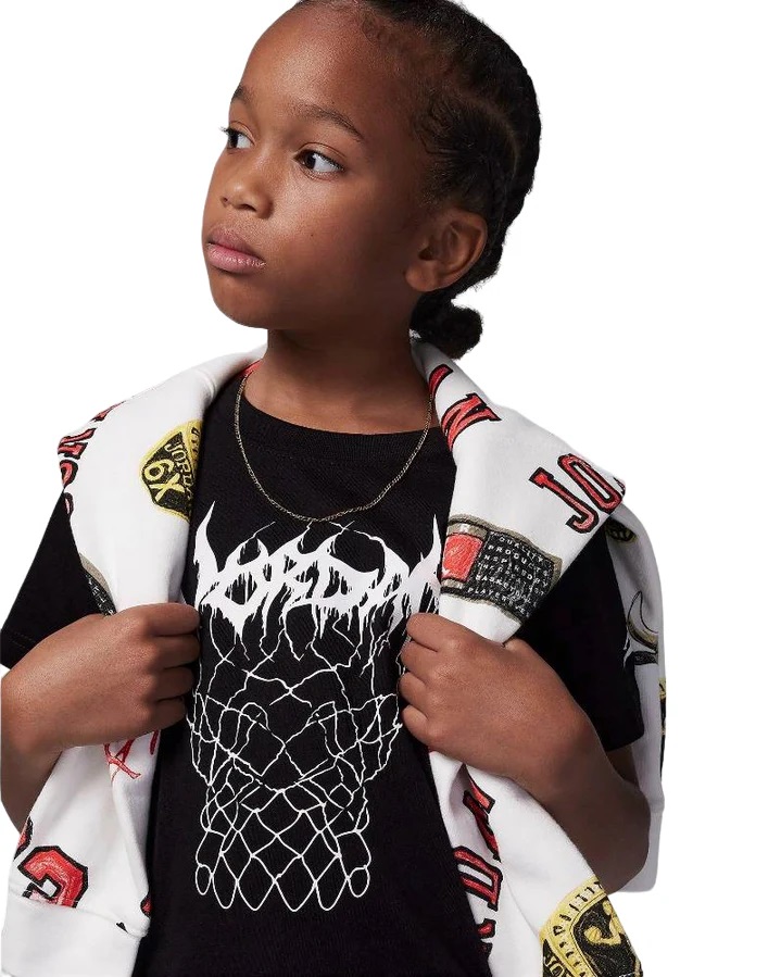 Complete il guardaroba del tuo ragazzo con lo stile unico di Jordan! Il completo composto da maglietta a manica corta e pantaloncino MJ Sport Mesh offre massima traspirabilità grazie al tessuto mesh e un tocco di eleganza con il logo MJ sul petto. Un look sportivo perfetto per ogni attività!
