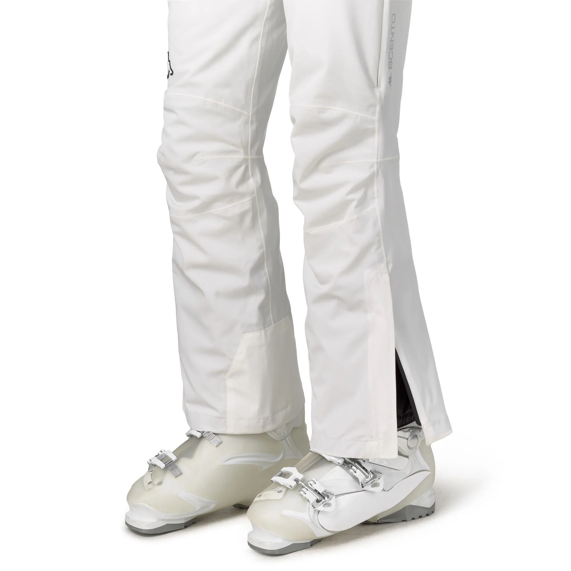 Pantaloni da donna imbottiti realizzati in tessuto 2 strati stretch con WATERPROOF PROTECTION 10.000 mm H2O, BREATHABILITY 10.000 g/m²/24h e trattamento idrorepellente PFC-Free. L’imbottitura da 60 g garantisce calore leggero e comfort. Slim fit per una vestibilità aderente e funzionale. Dotati di bretelle staccabili personalizzate con Banda e ripetizione del logo Omini, regolazione in vita, tasche con chiusure zip impermeabili, rinforzi sul fondo gamba, apertura con zip sul fondo gamba, getta per scarponi e cuciture termonastrate. Completano il design il logo 8CENTO applicato e il logo Omini applicato.