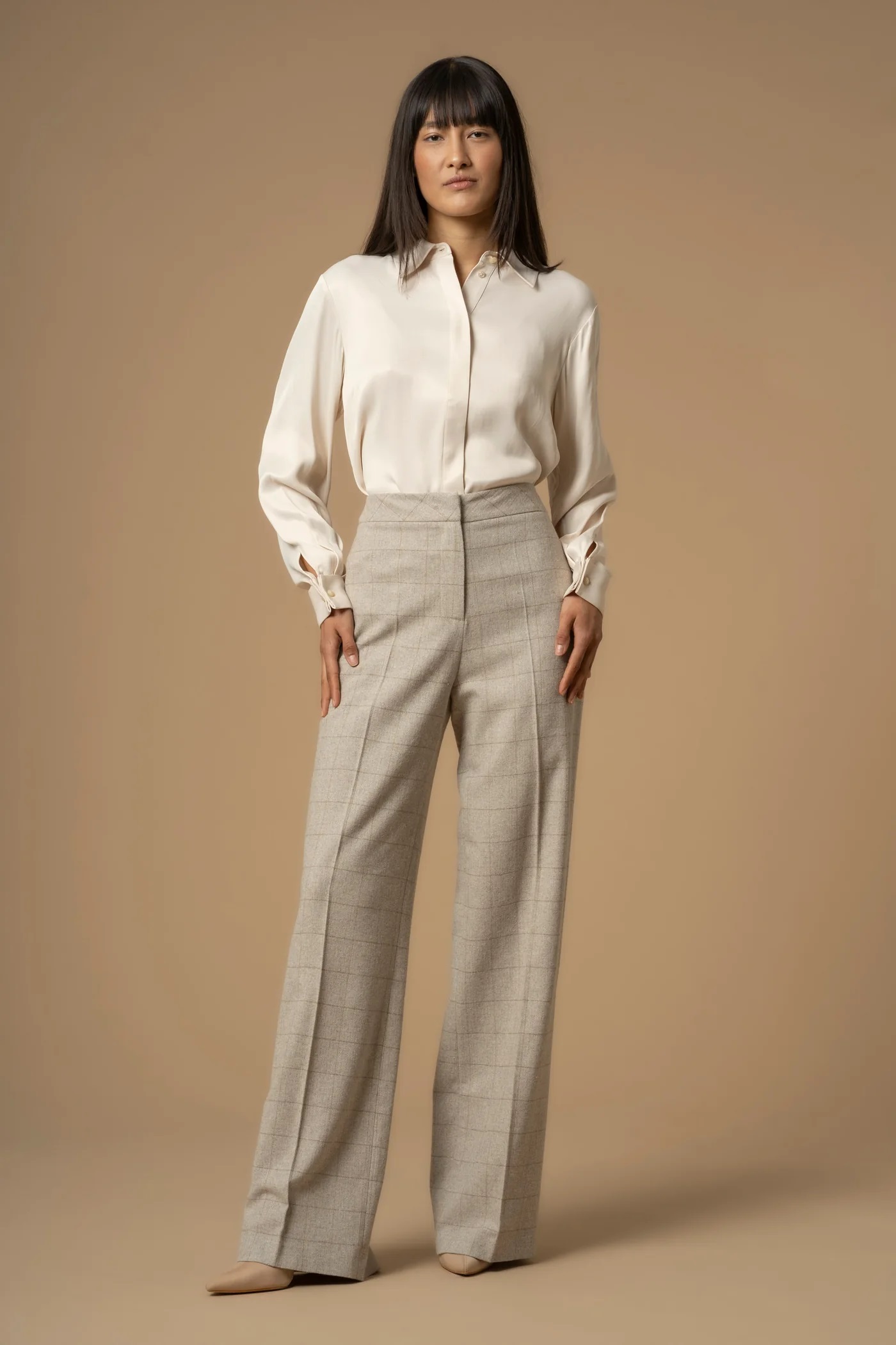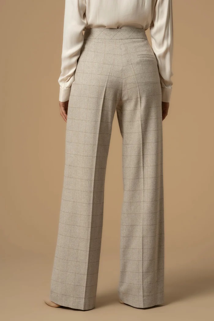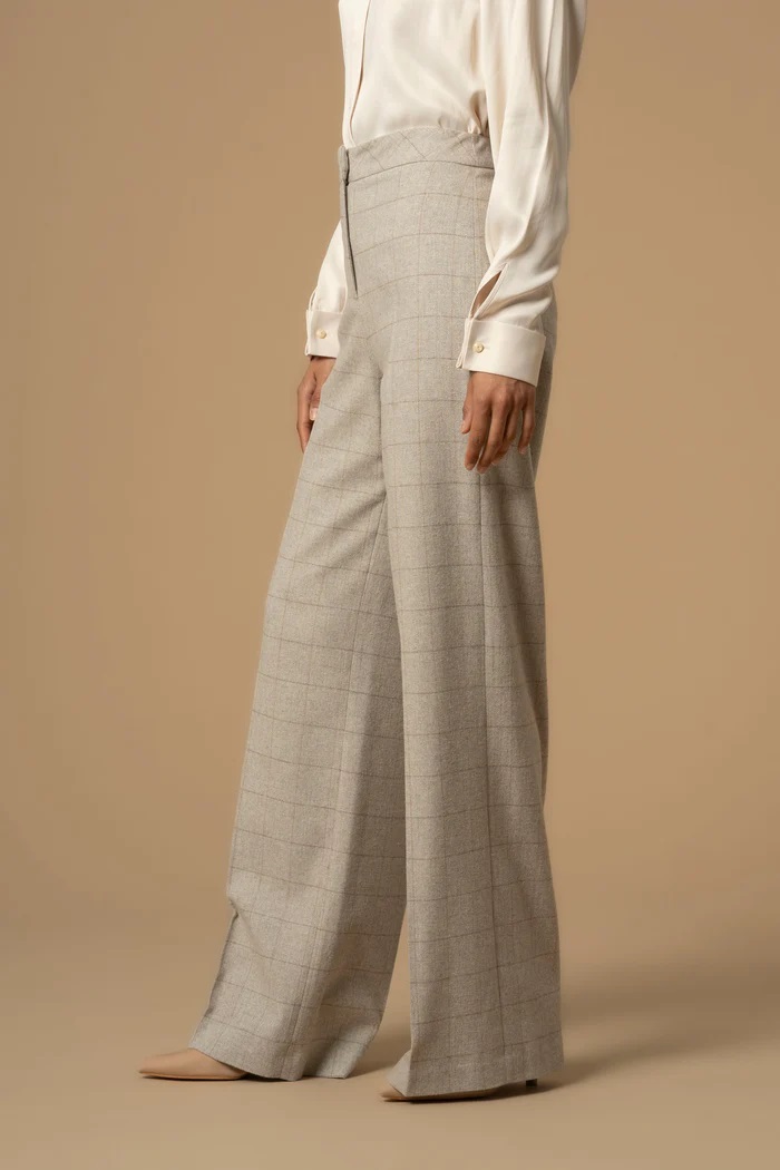 Questi pantaloni della capsule Pure Verve sono realizzati in un tessuto a quadri, perfetto per abbinamenti in chiave old money. Il capo presenta la piega stirata e chiusura con zip nascosta.