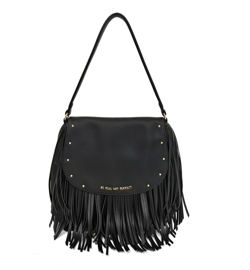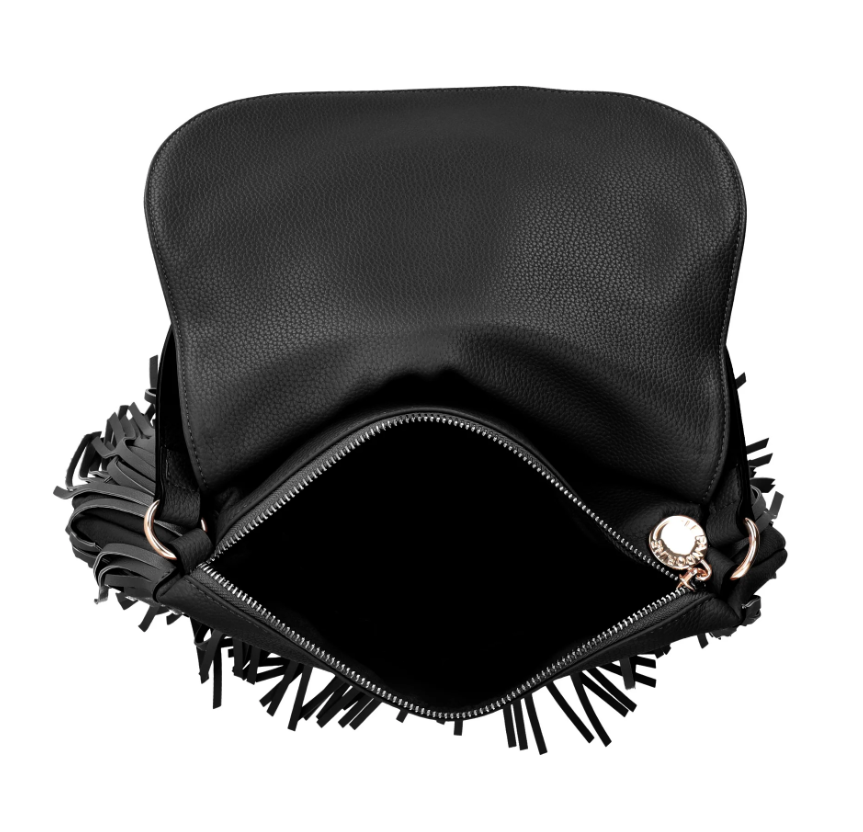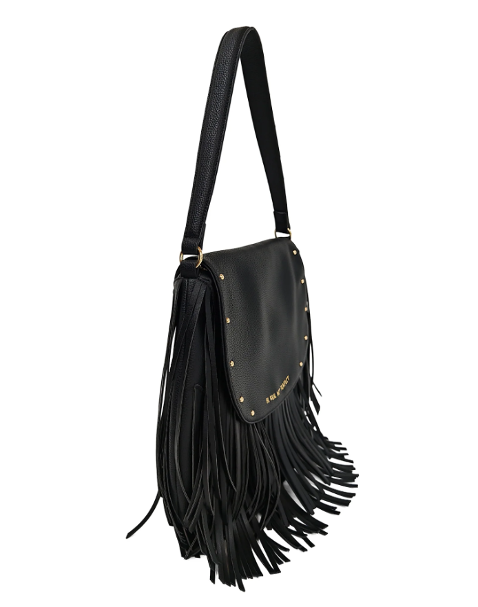Borsa a spalla con patta e frange